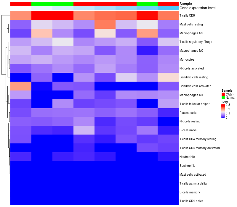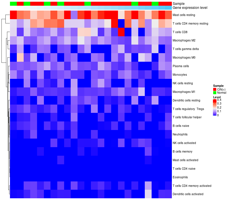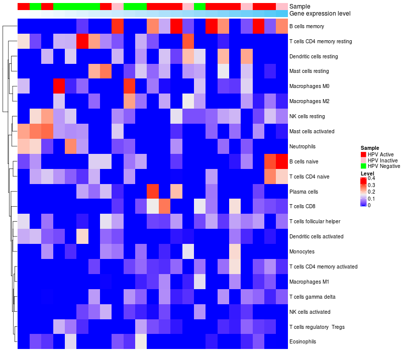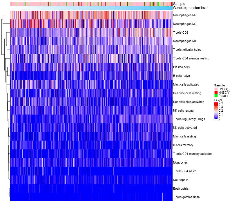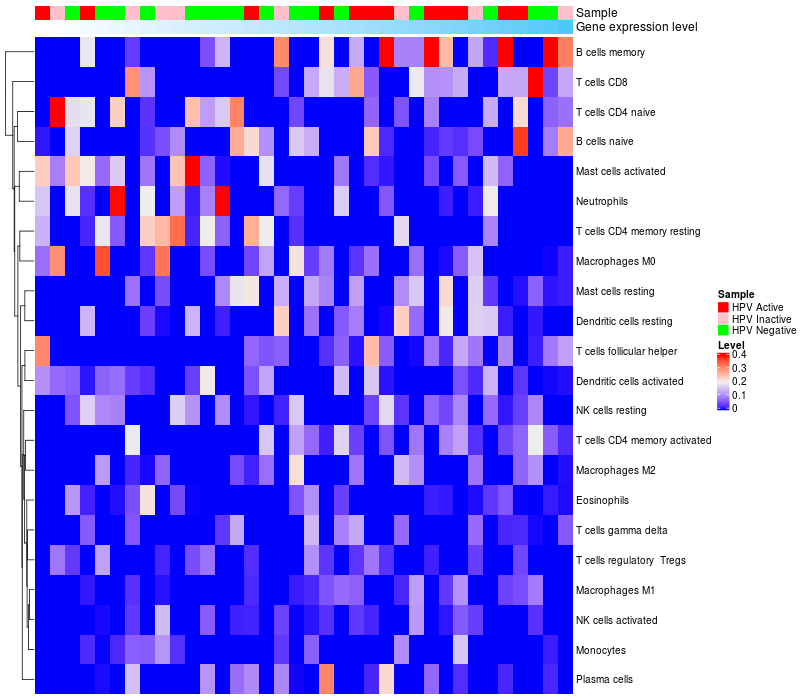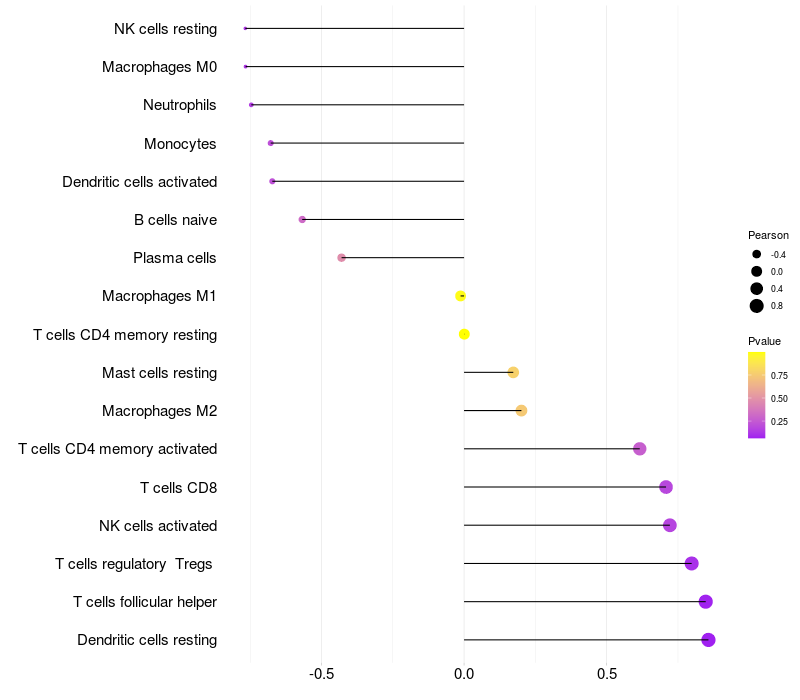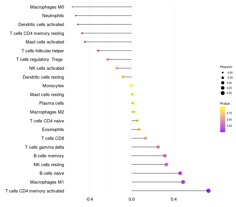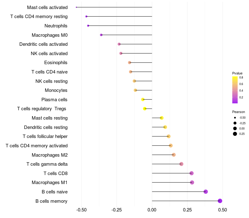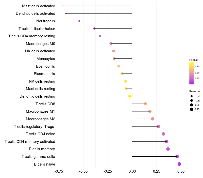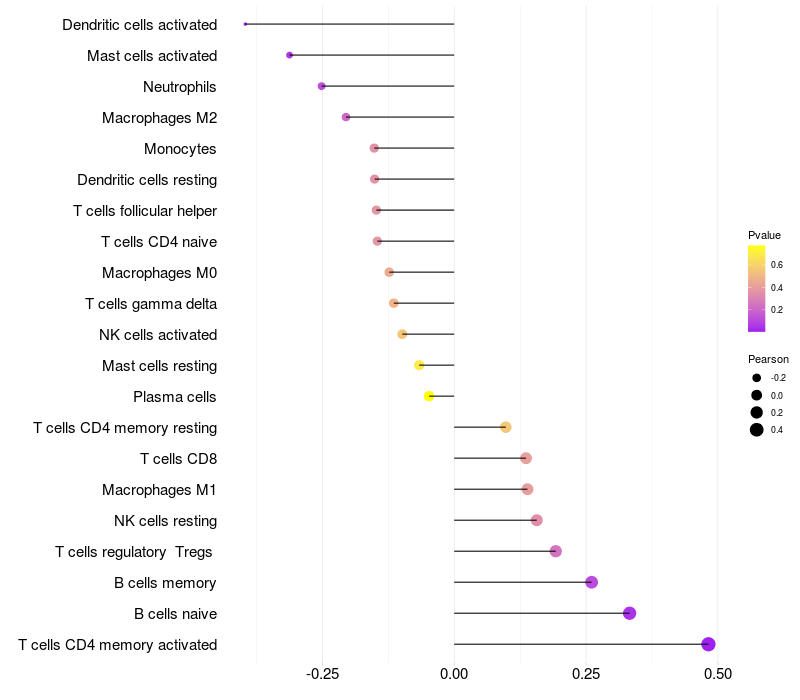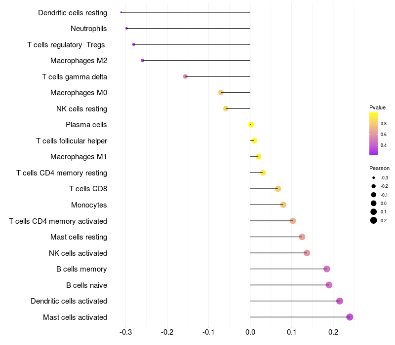 Lollipop of CLNK expression and immune infiltrating cell level correlation result in HPV+ samples