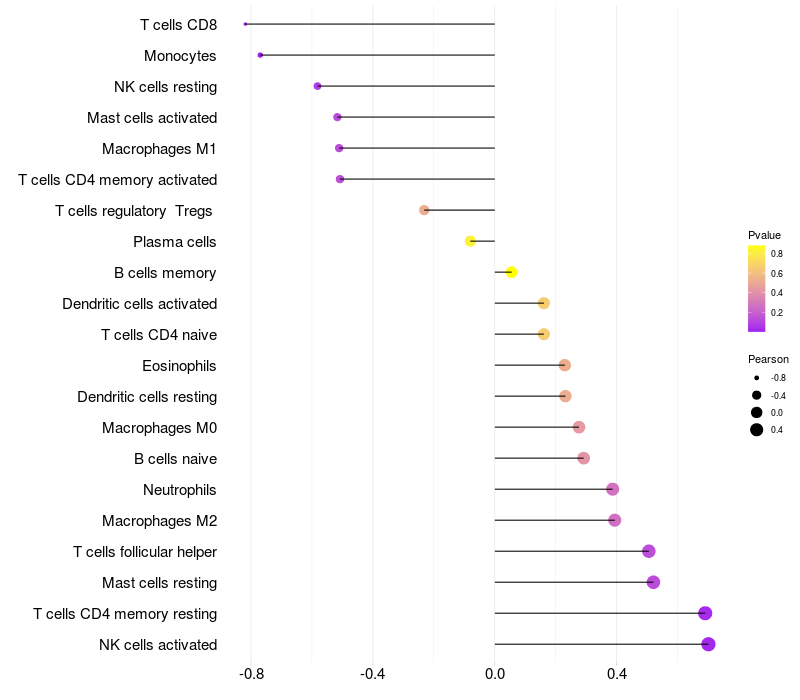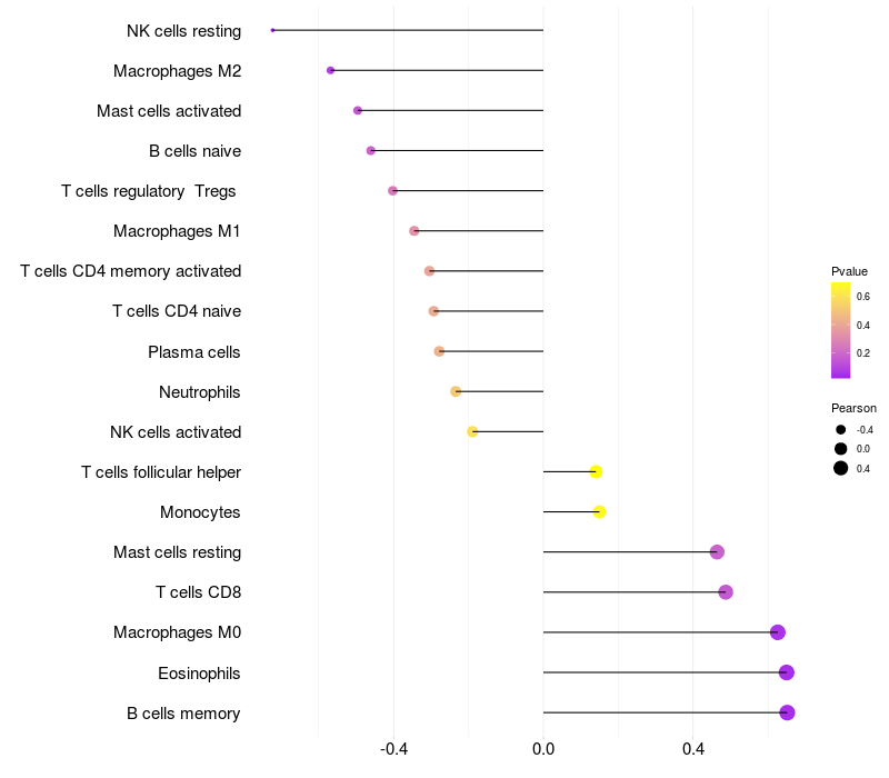 Lollipop of CLOCK expression and immune infiltrating cell level correlation result in HBV+ samples