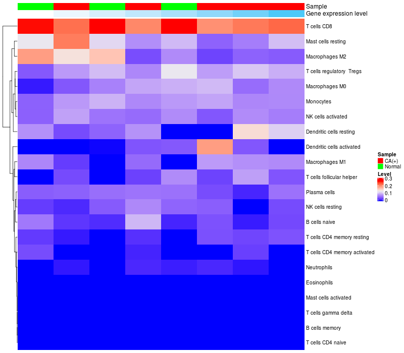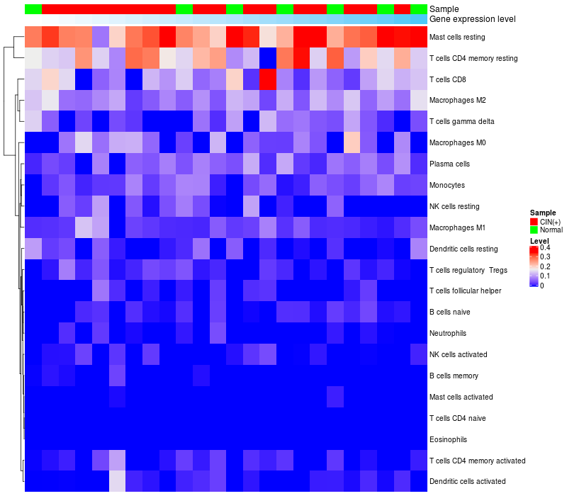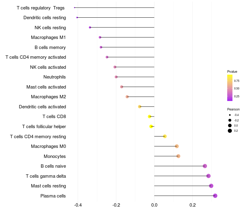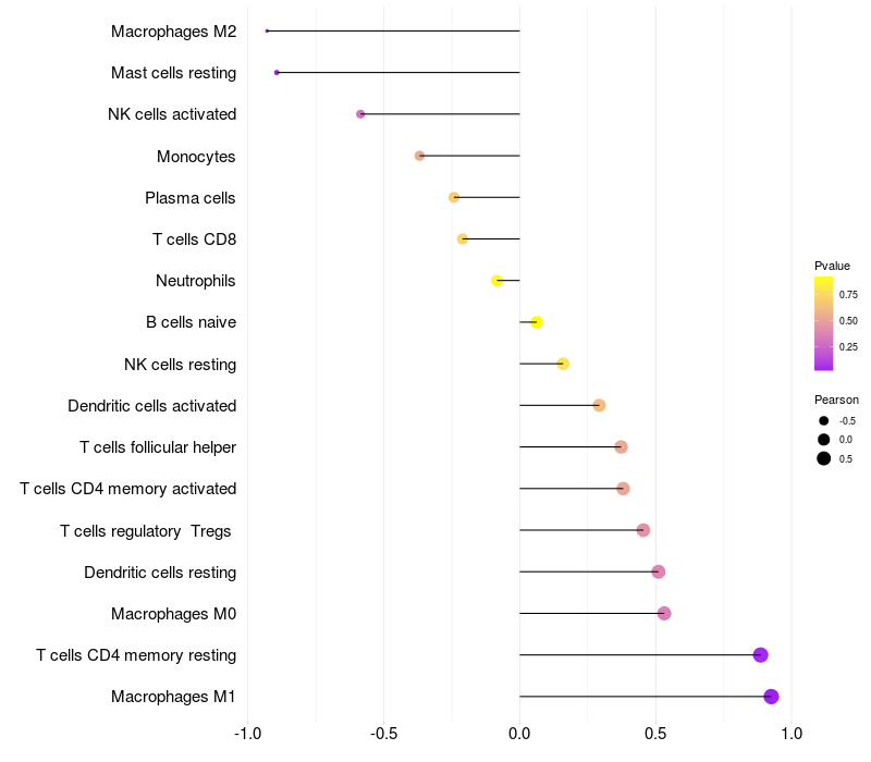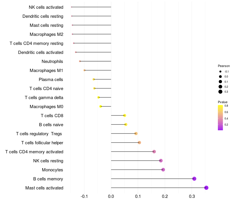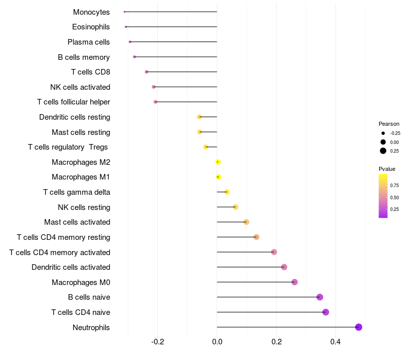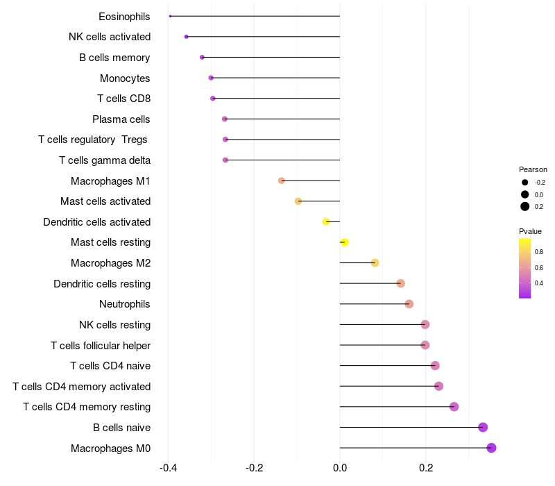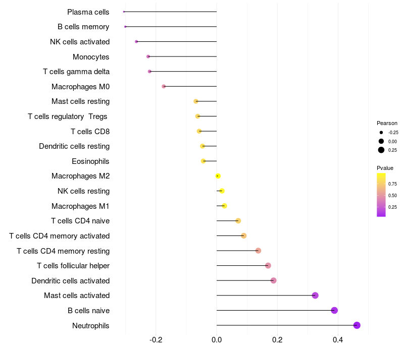 Lollipop of CNGA2 expression and immune infiltrating cell level correlation result in HPV+ samples