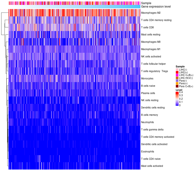 Liver hepatocellular carcinoma HCV (HBV+)(86), Liver hepatocellular carcinoma HCV (HBV-)(19), Liver hepatocellular carcinoma (HBV+)(209), Liver hepatocellular carcinoma (HBV+)(60), Paracancerous HCV (HBV+)(4), Paracancerous (HBV-)(28), Paracancerous (HBV+)(18) |