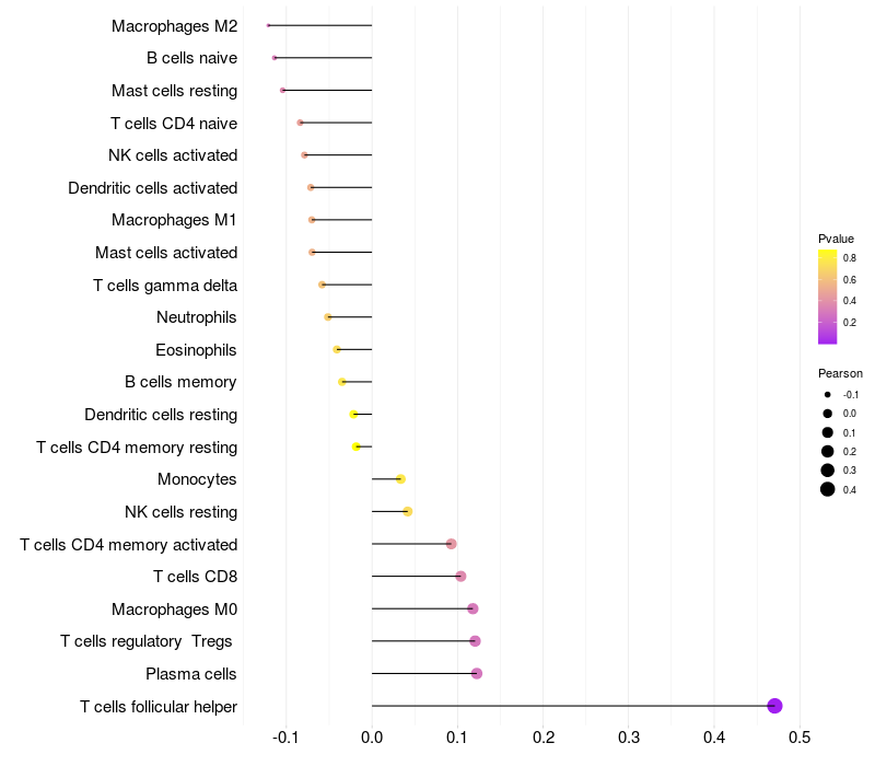 Lollipop of CNGB3 expression and immune infiltrating cell level correlation result in HBV+ samples