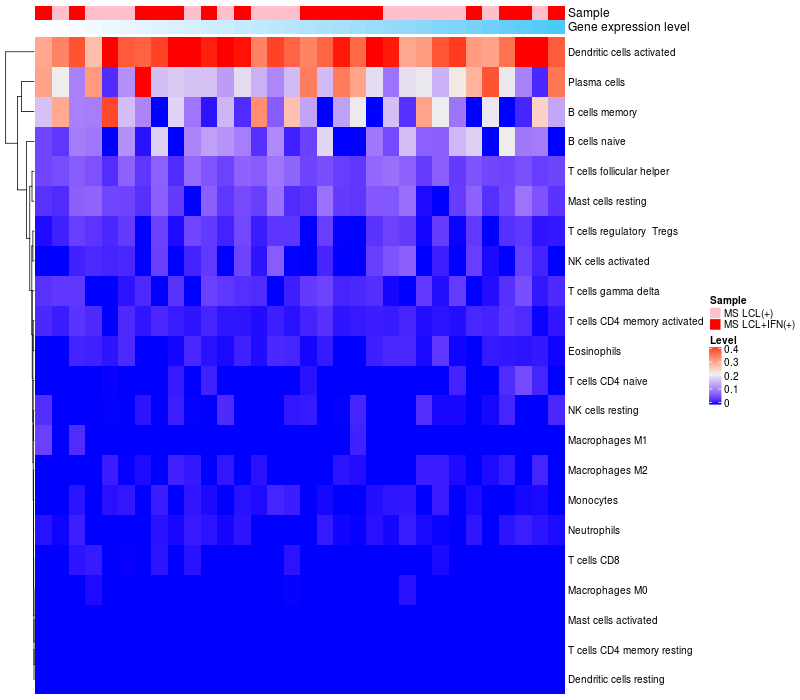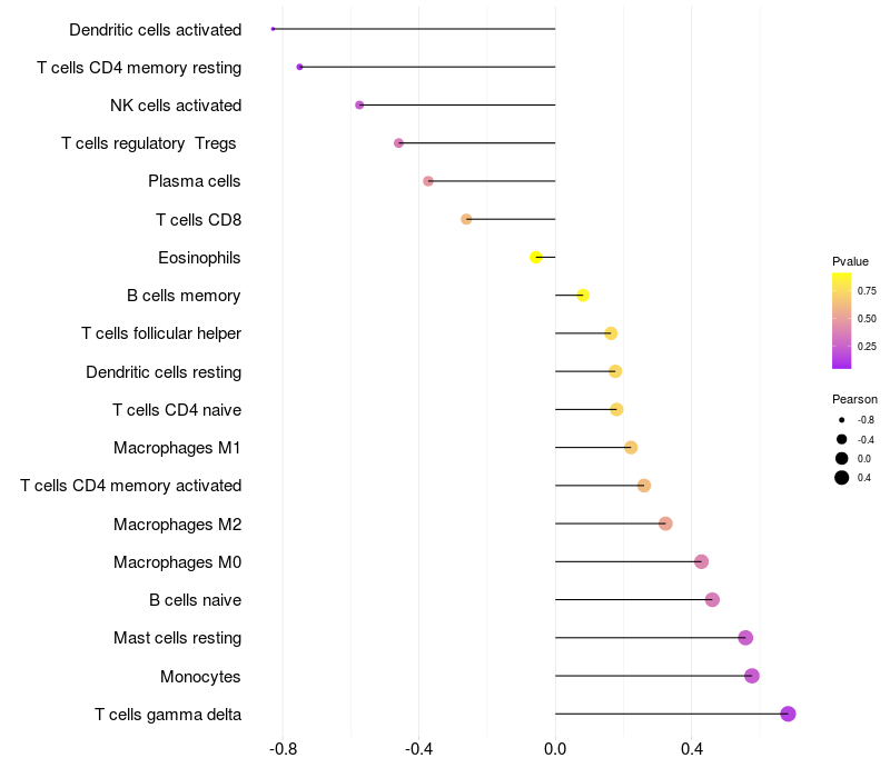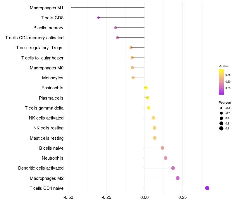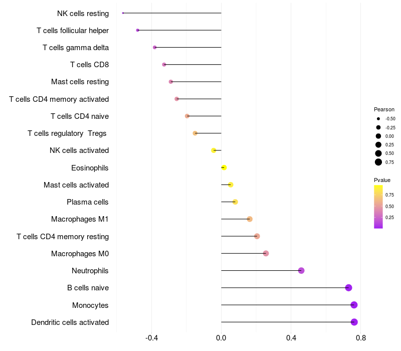 Lollipop of CNTLN expression and immune infiltrating cell level correlation result in EBV+ samples