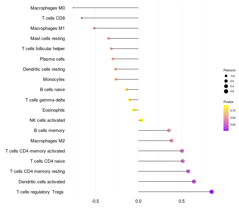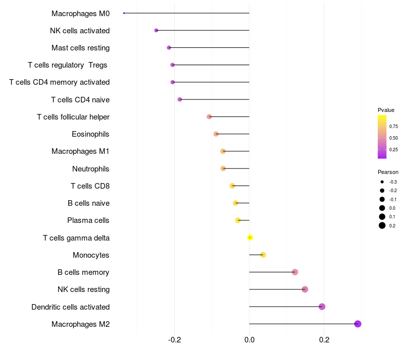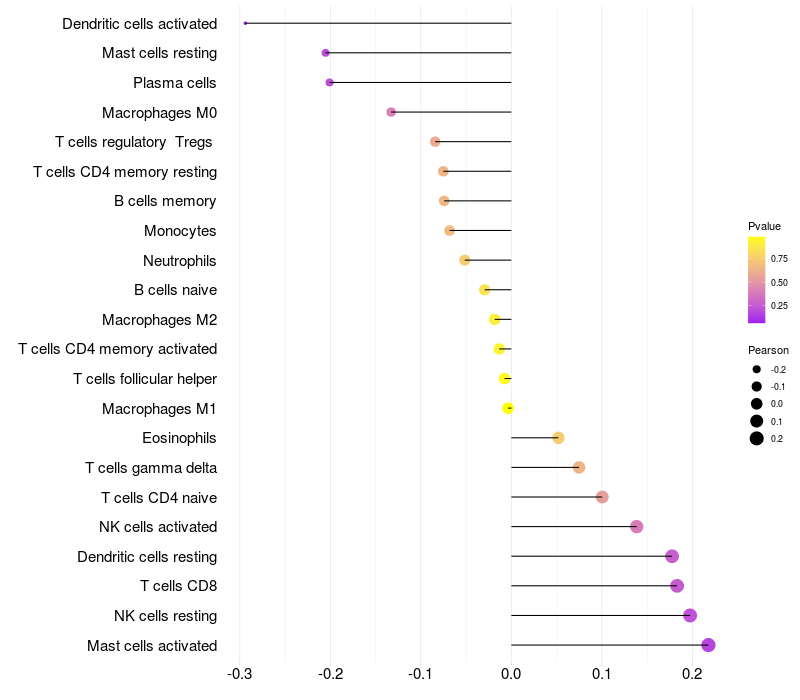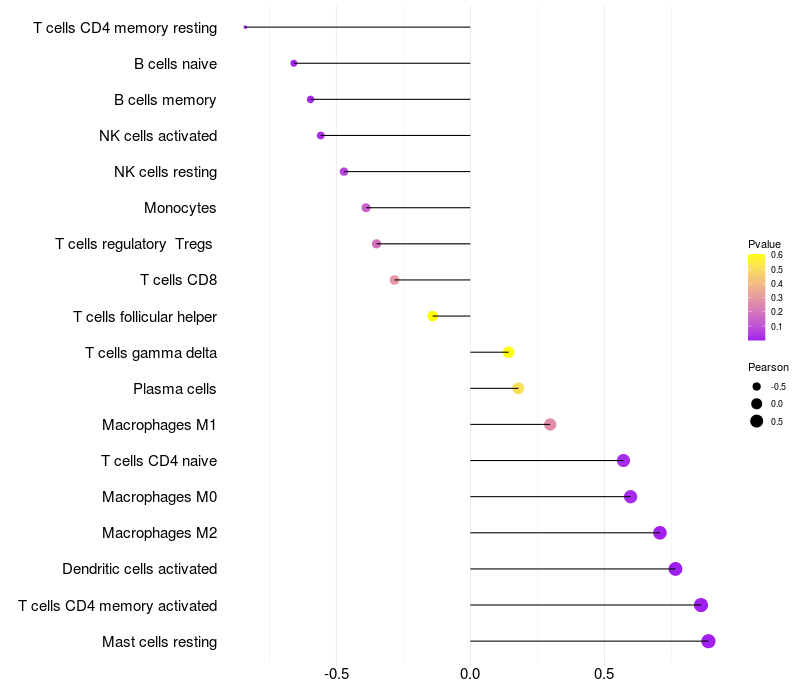 Lollipop of CNTNAP5 expression and immune infiltrating cell level correlation result in EBV+ samples