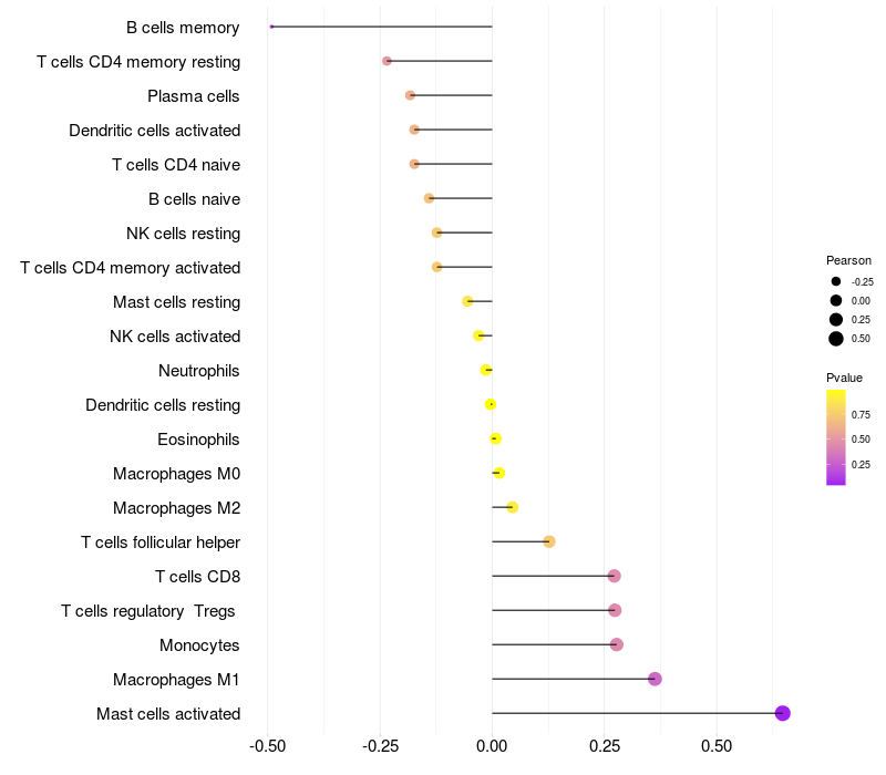 Lollipop of COBLL1 expression and immune infiltrating cell level correlation result in HBV+ Liver cirrhosis samples