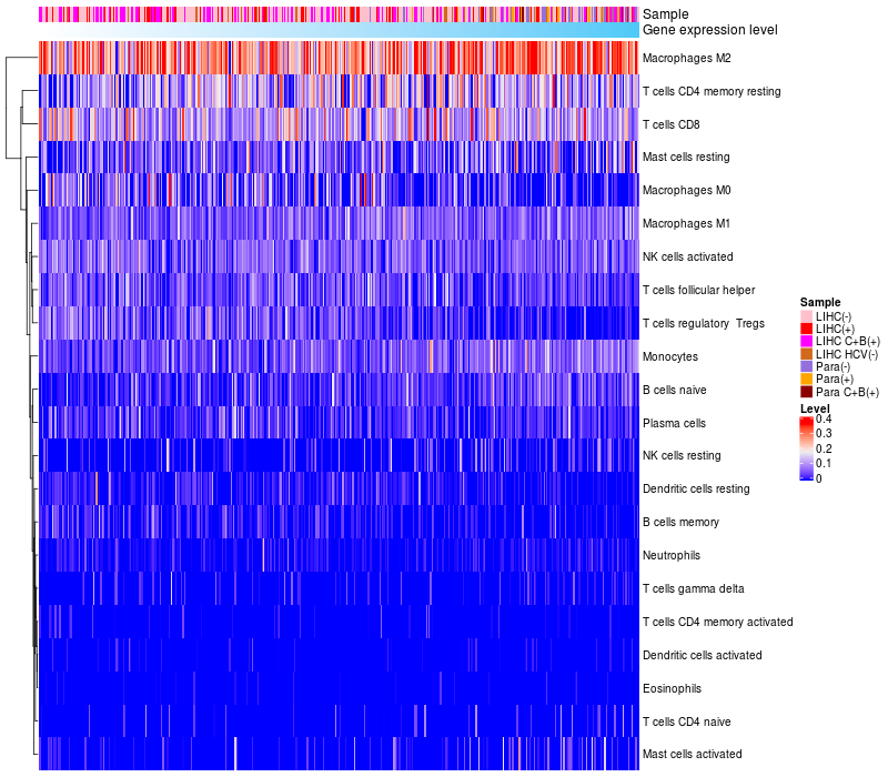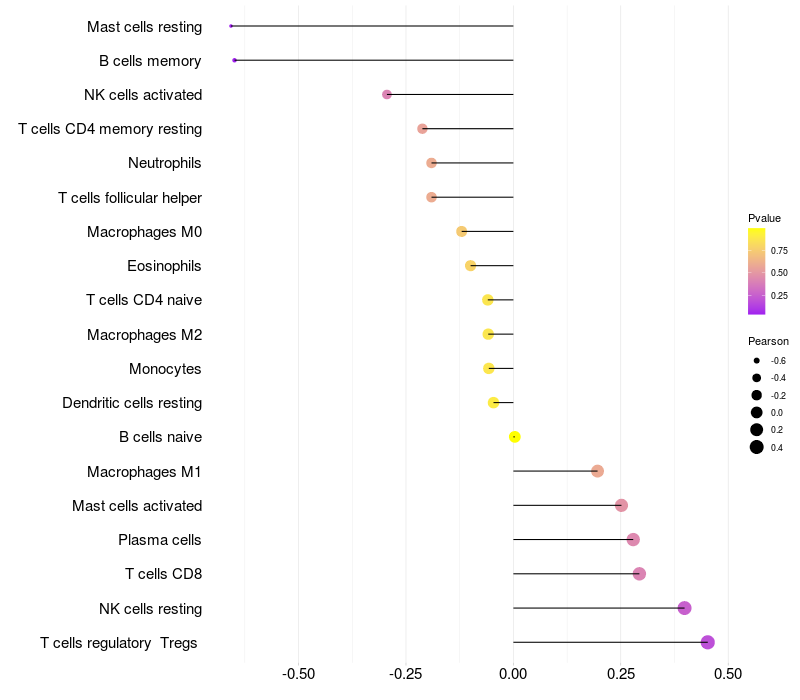 Relationship between gene expression and immune infiltrating cell level