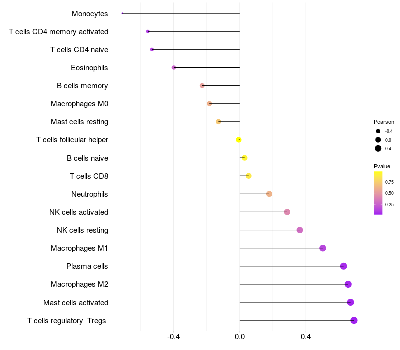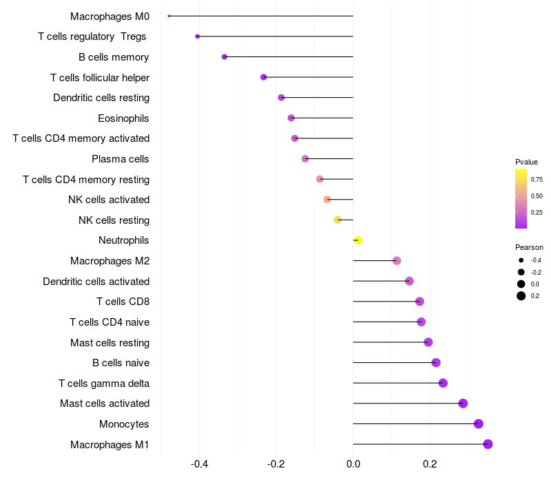 Lollipop of COBLL1 expression and immune infiltrating cell level correlation result in HBV+ Chronic HBV (CHB) infection samples