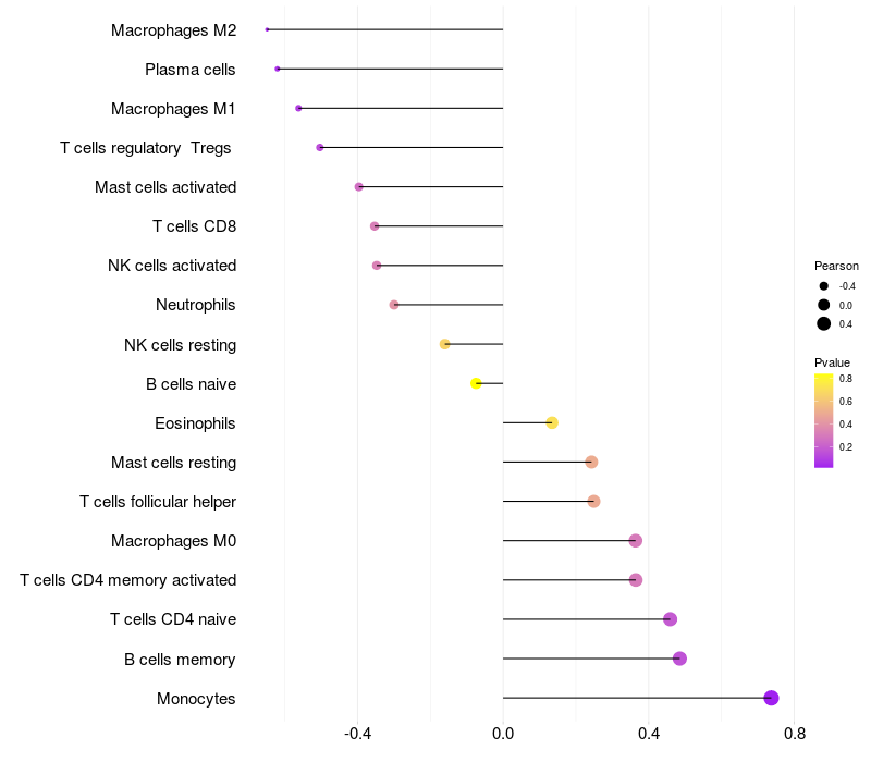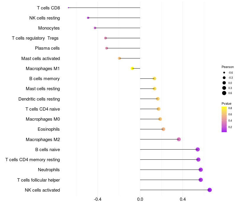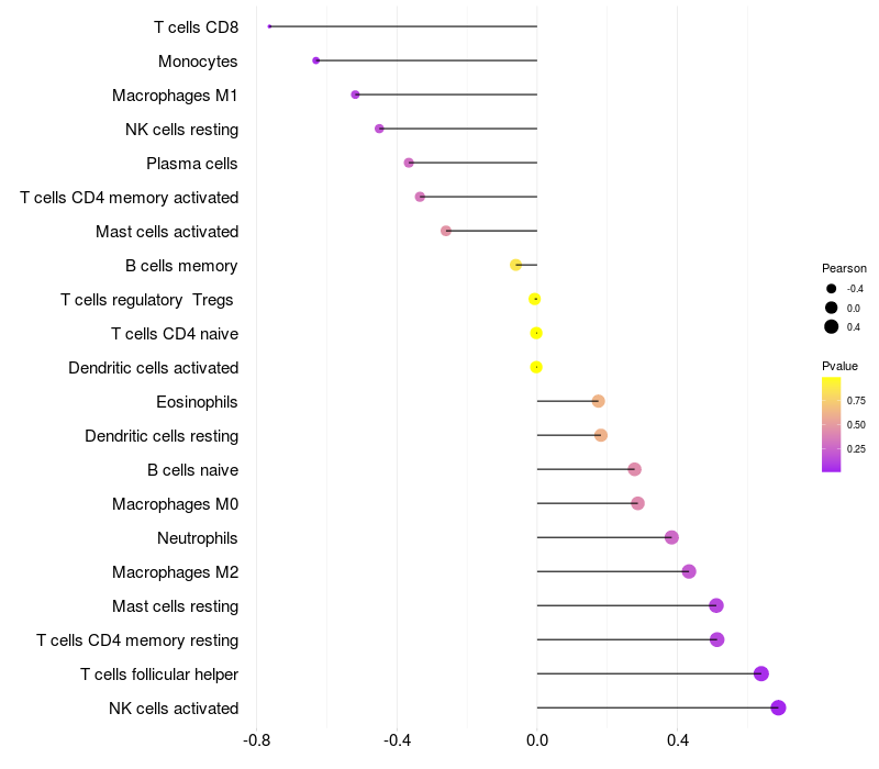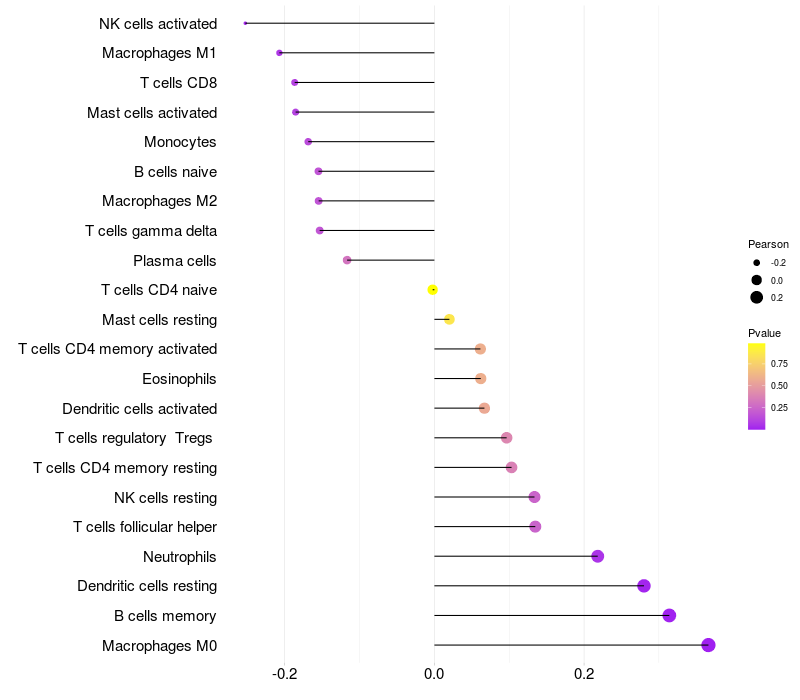 Lollipop of COIL expression and immune infiltrating cell level correlation result in HBV+ Liver cirrhosis samples