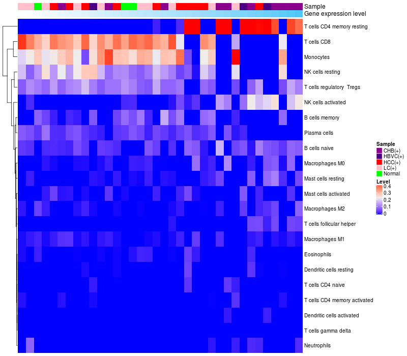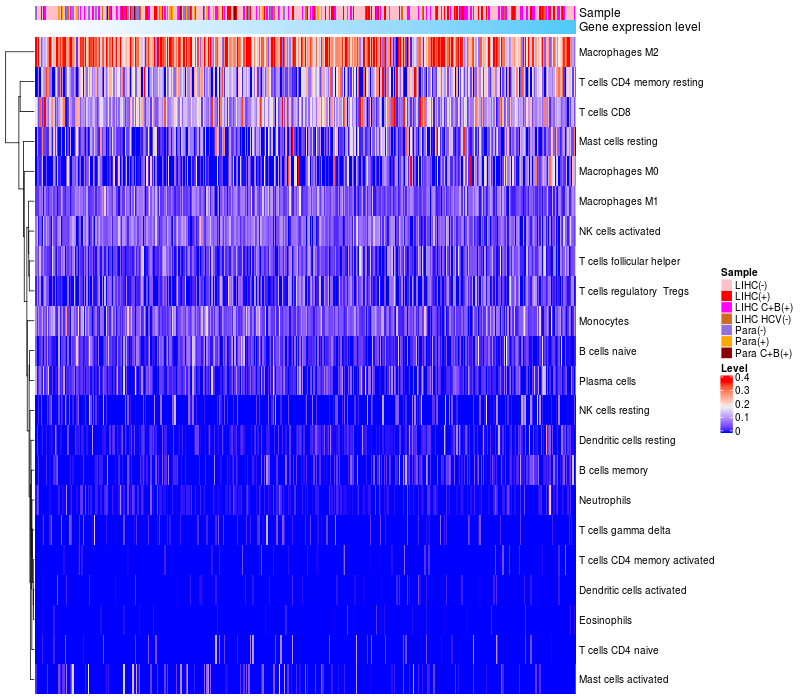 Liver hepatocellular carcinoma HCV (HBV+)(86), Liver hepatocellular carcinoma HCV (HBV-)(19), Liver hepatocellular carcinoma (HBV+)(209), Liver hepatocellular carcinoma (HBV+)(60), Paracancerous HCV (HBV+)(4), Paracancerous (HBV-)(28), Paracancerous (HBV+)(18) |