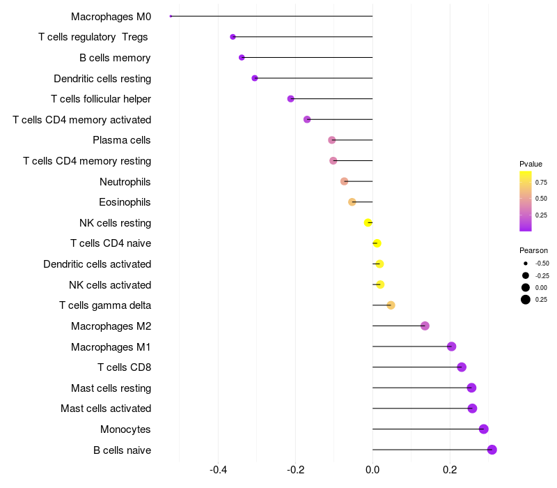 Lollipop of COL18A1 expression and immune infiltrating cell level correlation result in HBV+ samples