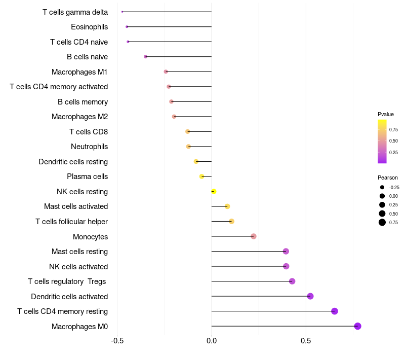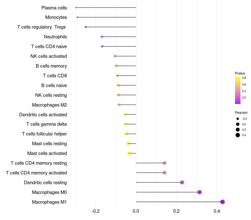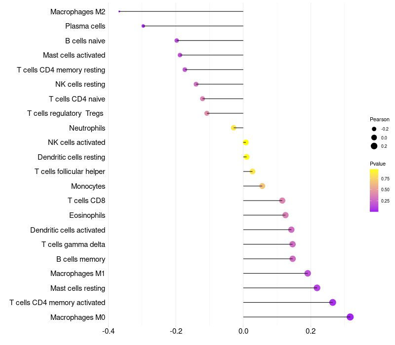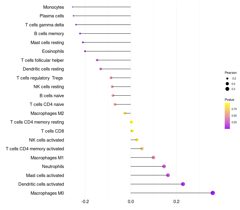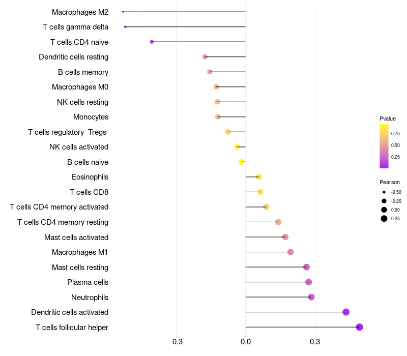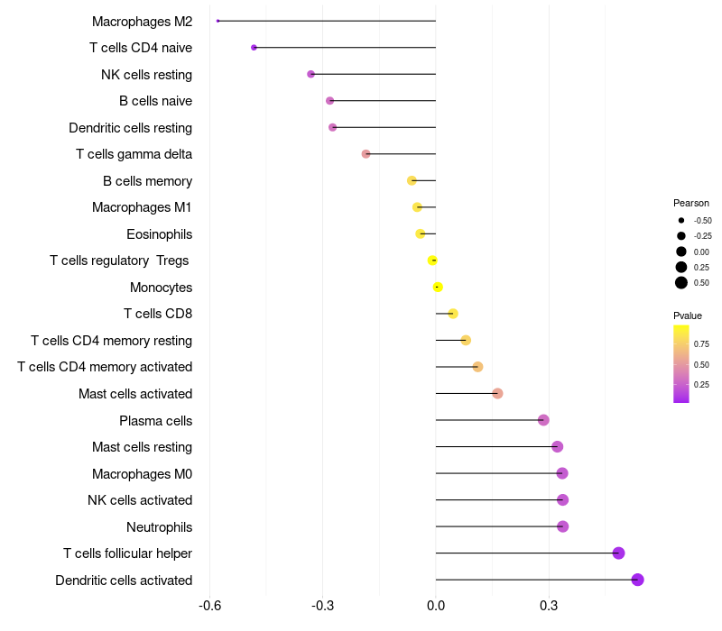 Lollipop of COL27A1 expression and immune infiltrating cell level correlation result in HPV+ samples