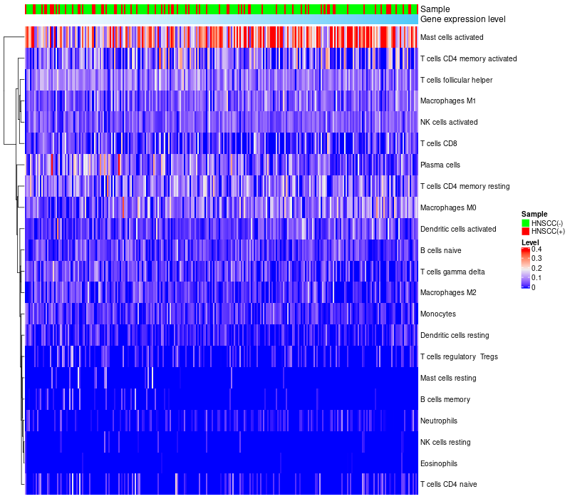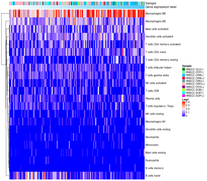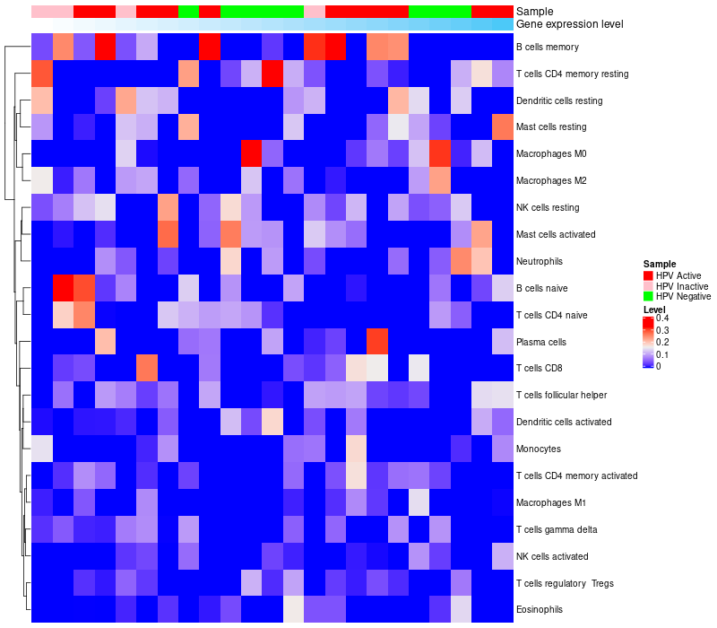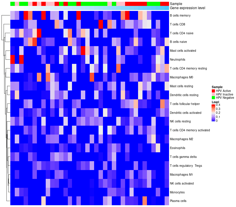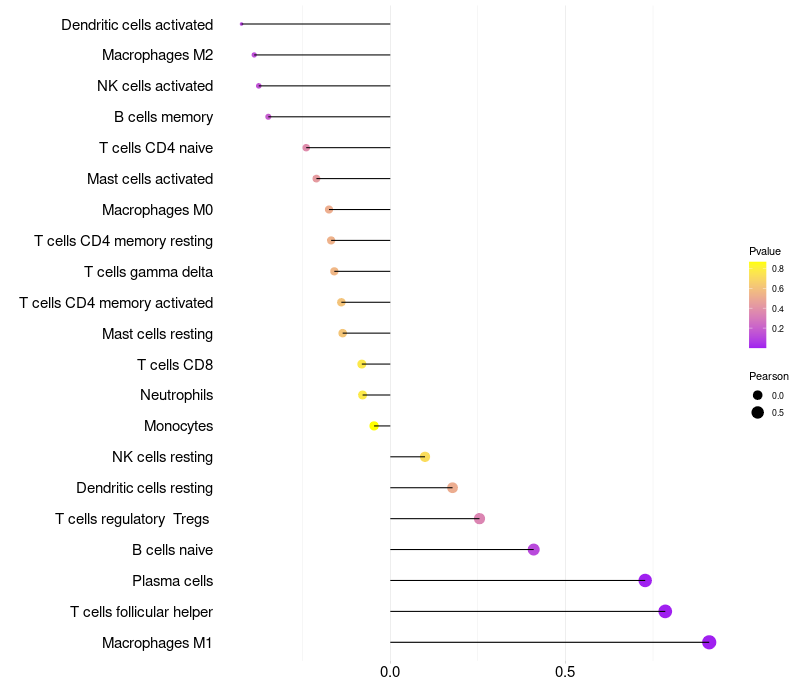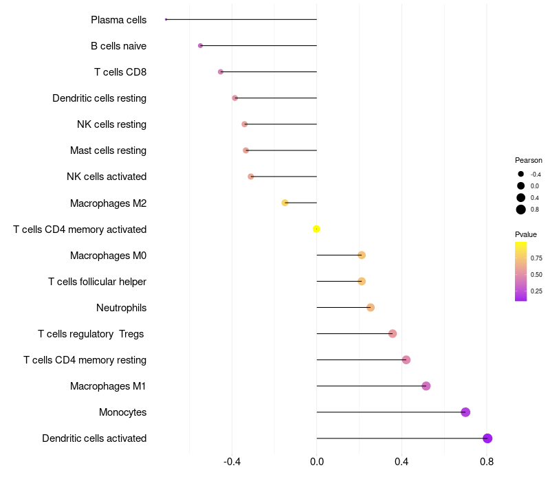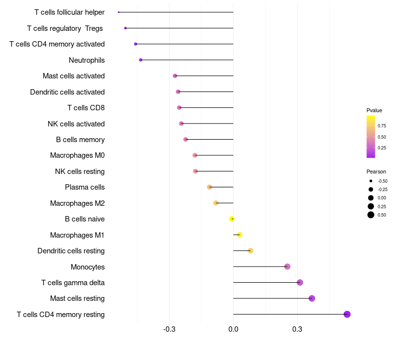 Lollipop of COL27A1 expression and immune infiltrating cell level correlation result in HPV+ samples