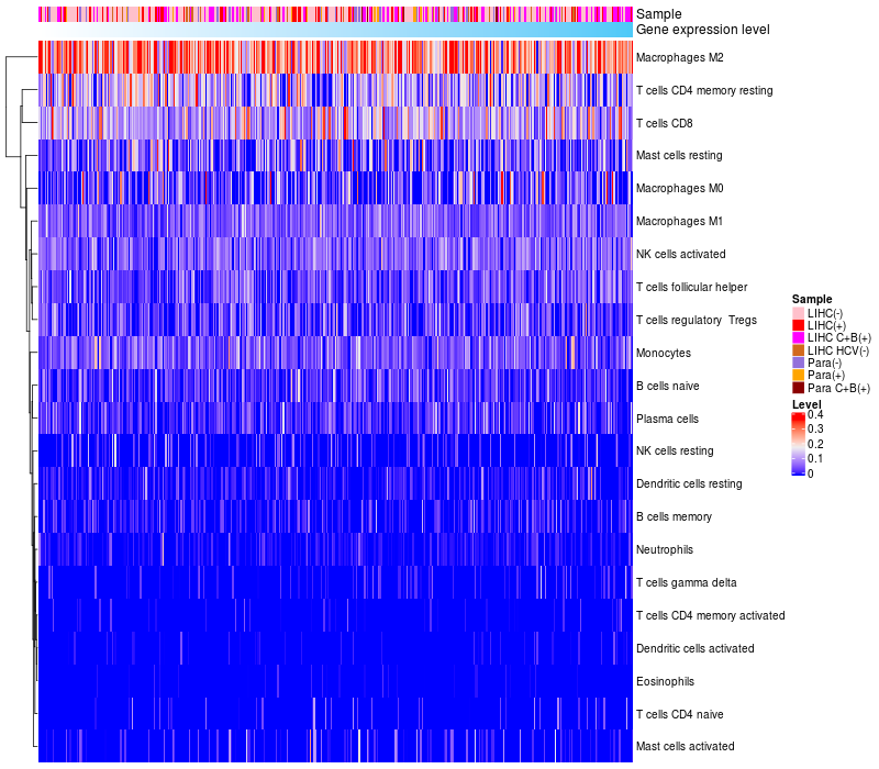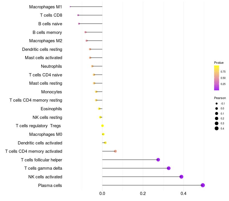 Relationship between gene expression and immune infiltrating cell level