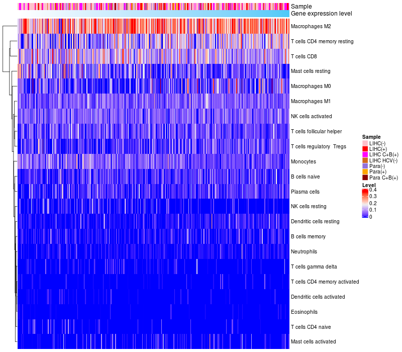 Relationship between gene expression and immune infiltrating cell level