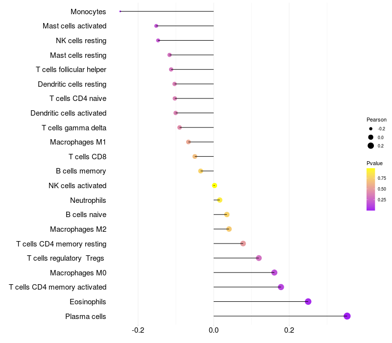 Lollipop of COL5A1 expression and immune infiltrating cell level correlation result in HBV+ samples