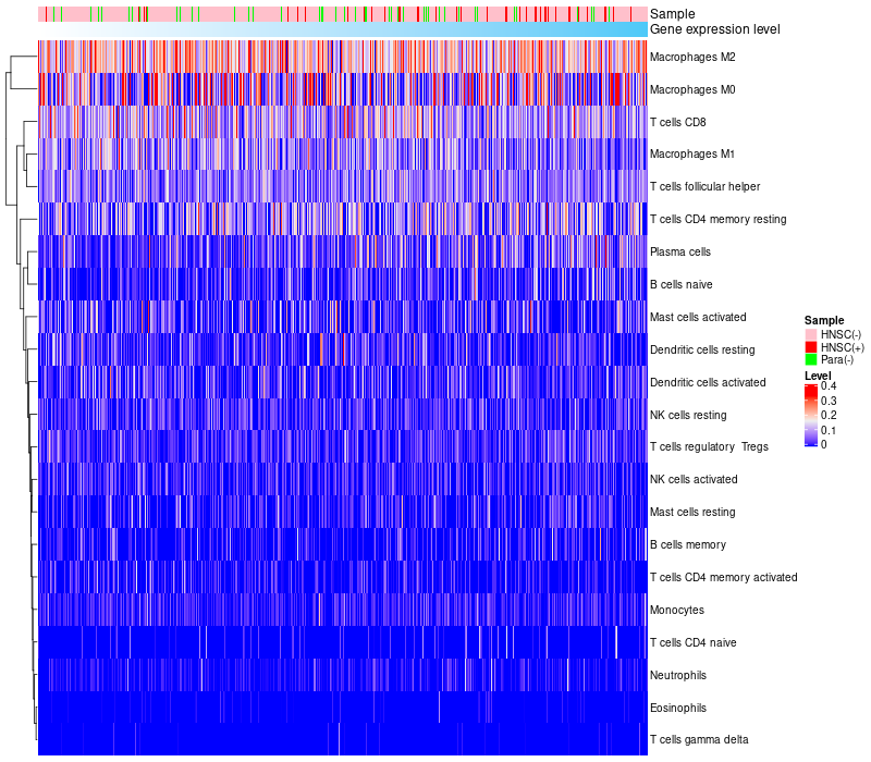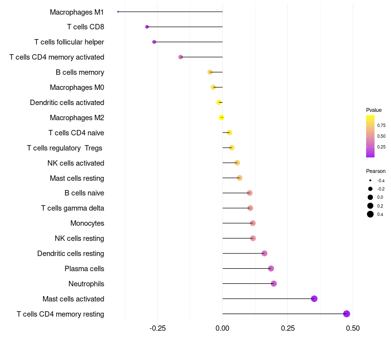 Relationship between gene expression and immune infiltrating cell level