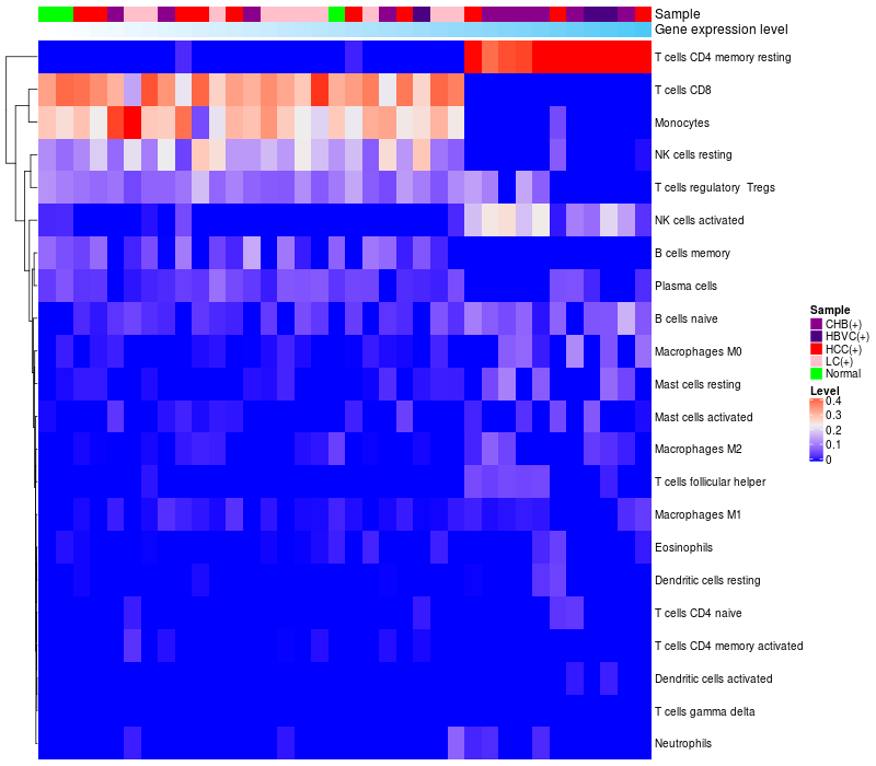 Liver hepatocellular carcinoma HCV (HBV+)(86), Liver hepatocellular carcinoma HCV (HBV-)(19), Liver hepatocellular carcinoma (HBV+)(209), Liver hepatocellular carcinoma (HBV+)(60), Paracancerous HCV (HBV+)(4), Paracancerous (HBV-)(28), Paracancerous (HBV+)(18) |