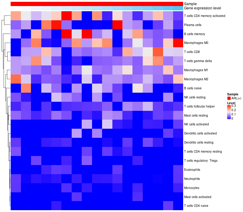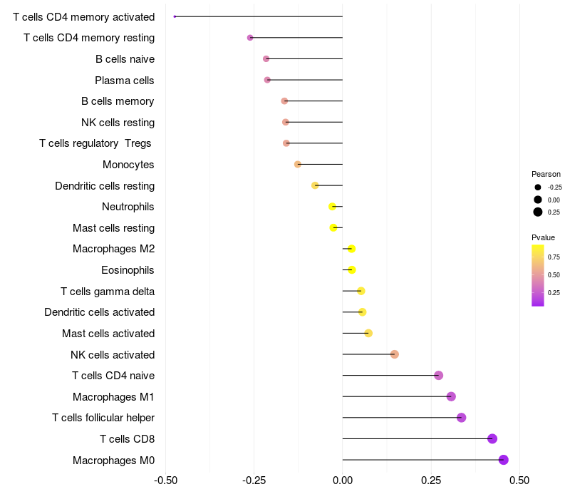 Relationship between gene expression and immune infiltrating cell level