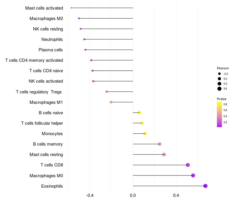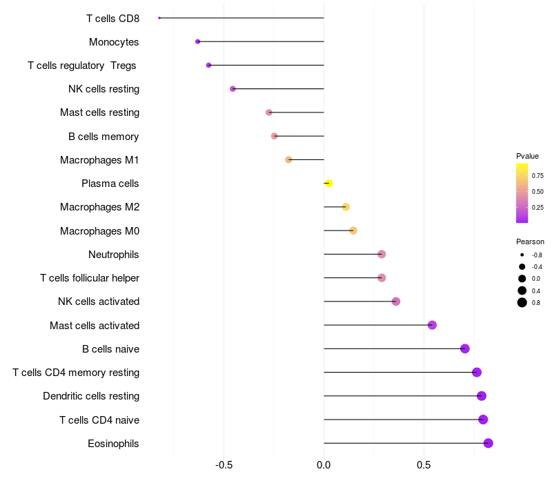 Lollipop of COMMD1 expression and immune infiltrating cell level correlation result in HBV+ Liver cirrhosis samples
