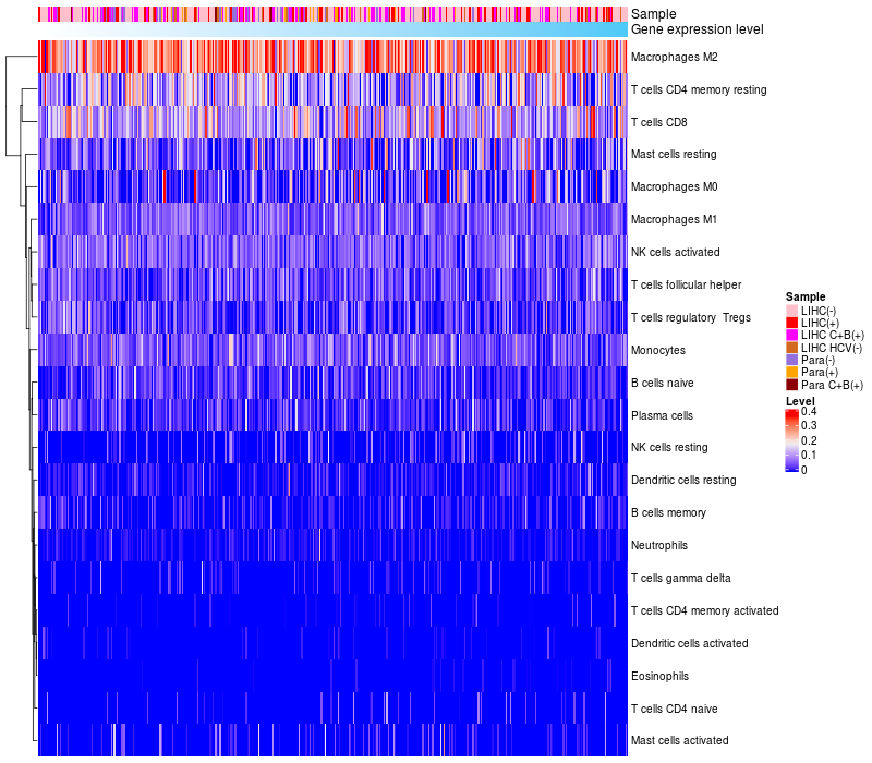 Relationship between gene expression and immune infiltrating cell level