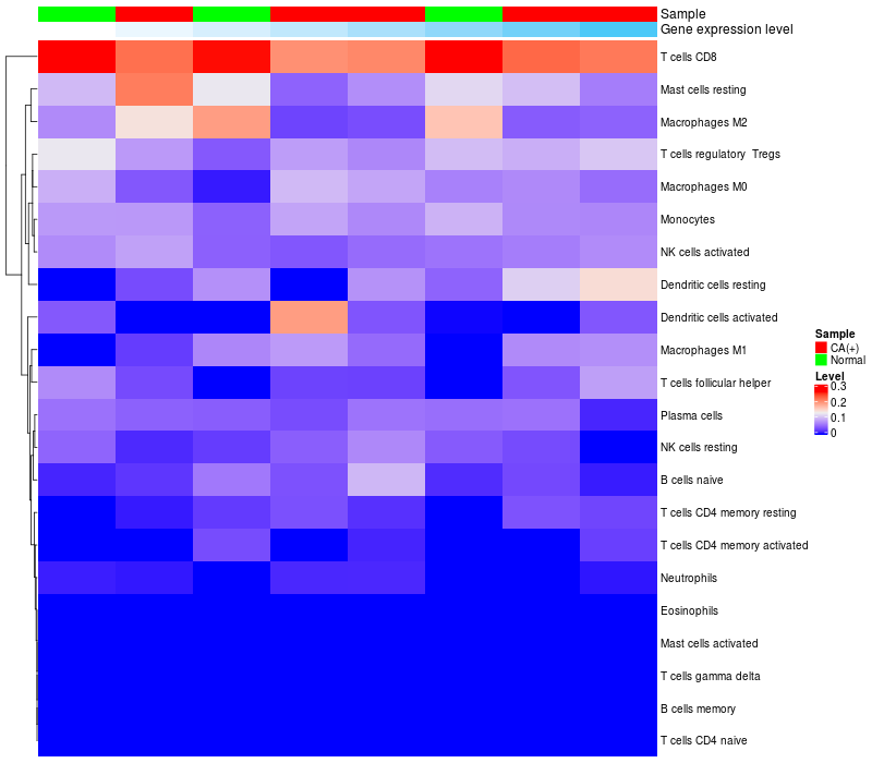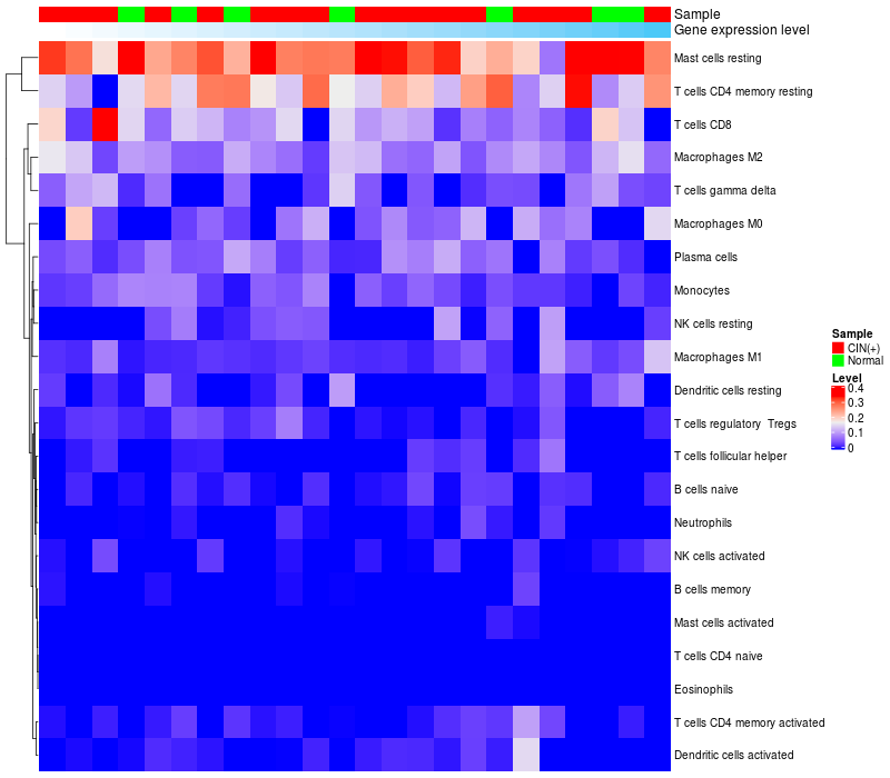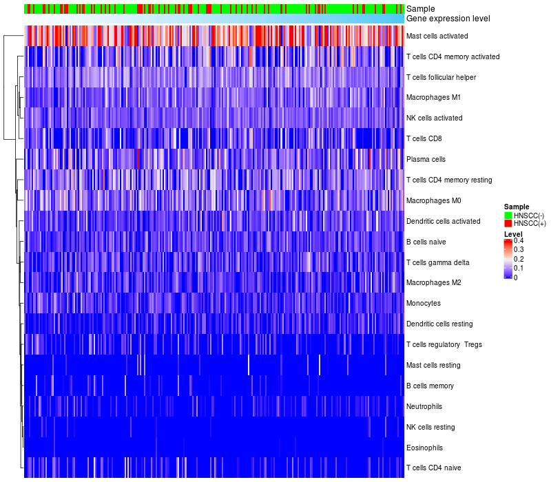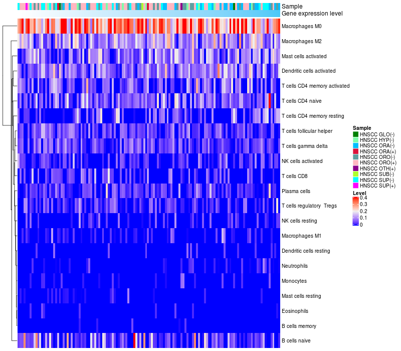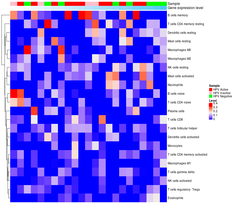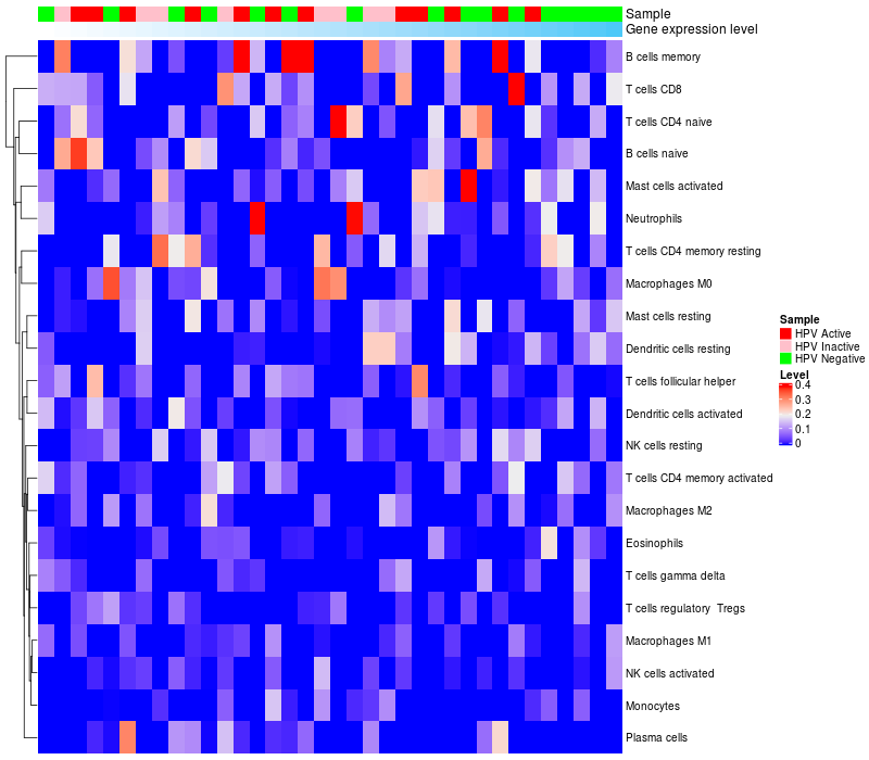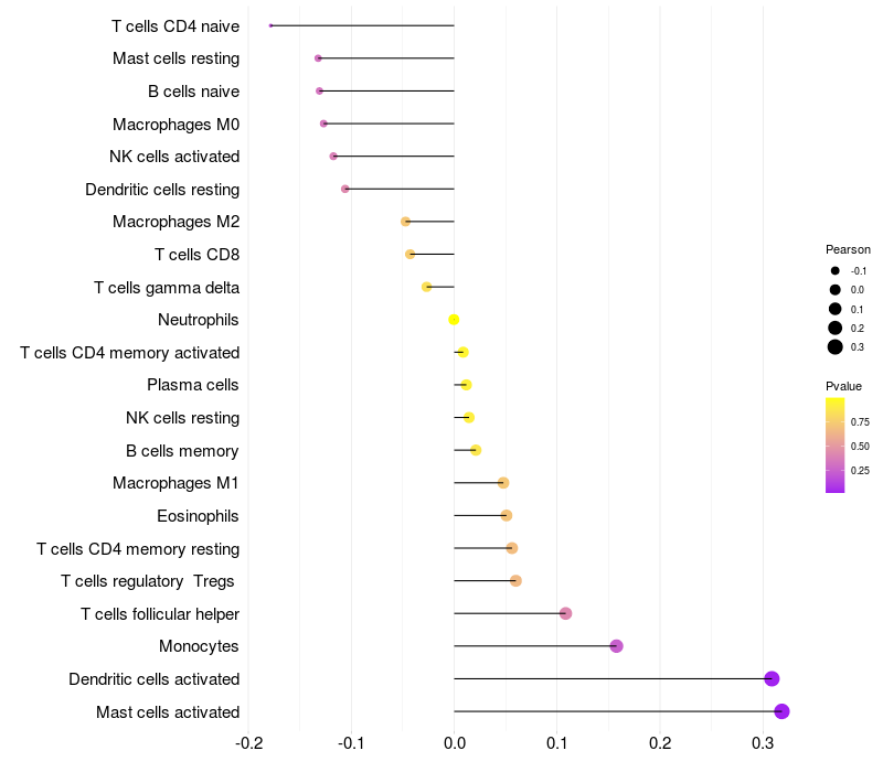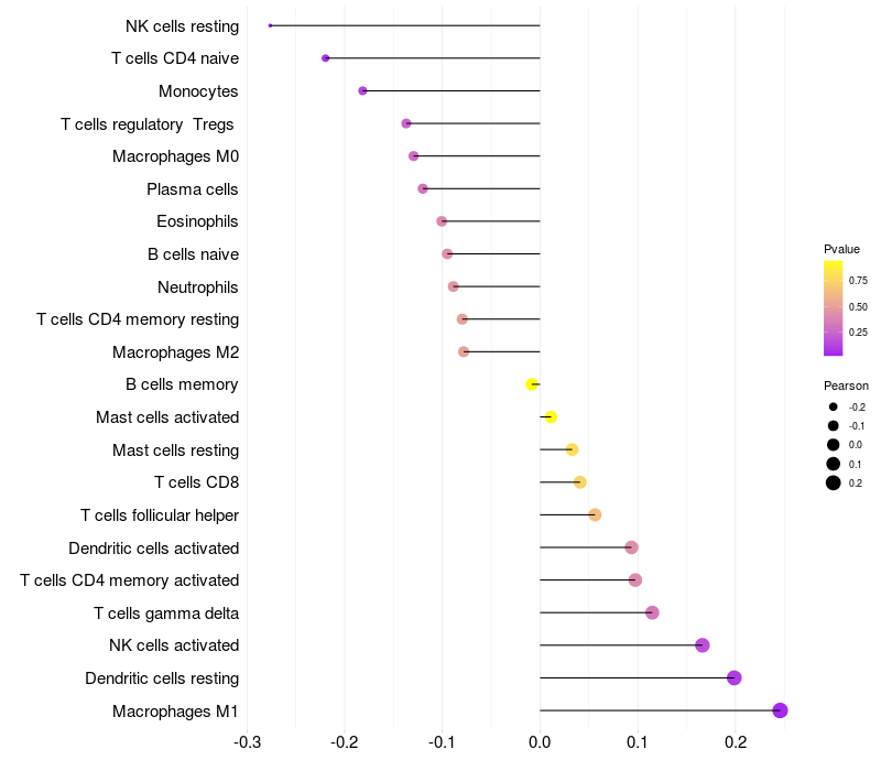 Lollipop of COPS5 expression and immune infiltrating cell level correlation result in HPV+ samples