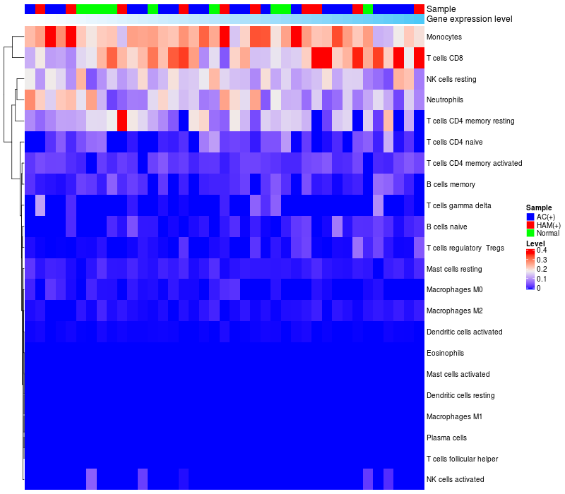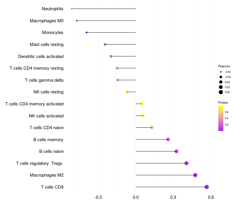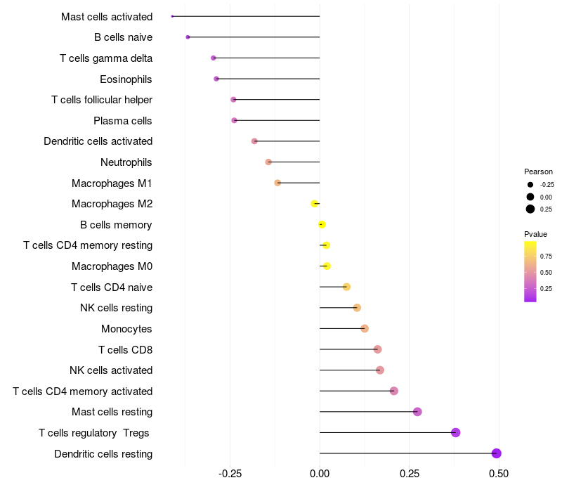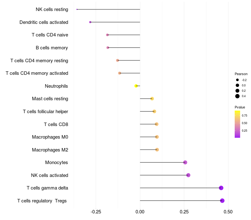 Lollipop of COQ9 expression and immune infiltrating cell level correlation result in HTLV1+ samples