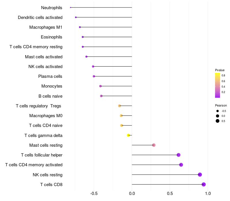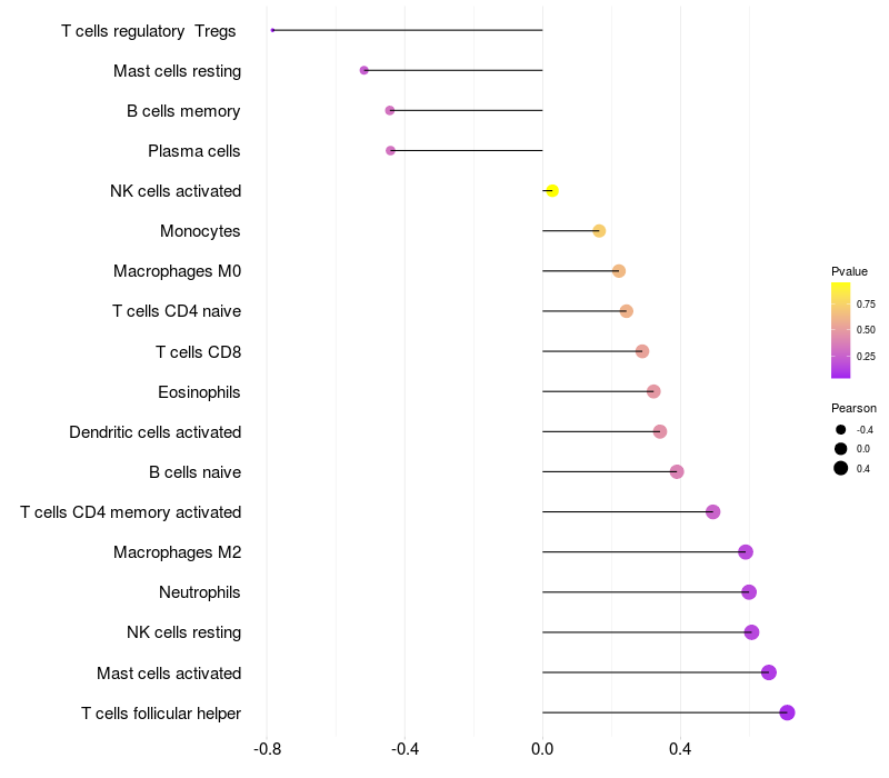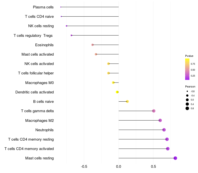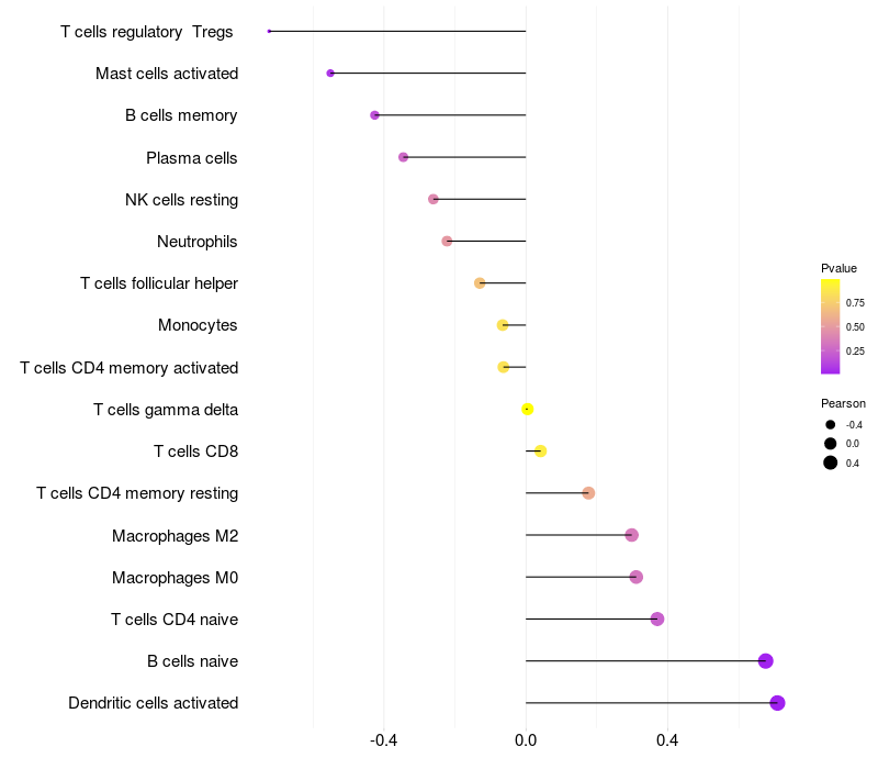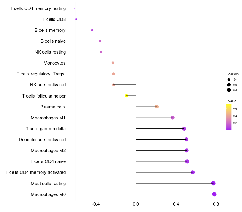 Lollipop of COX15 expression and immune infiltrating cell level correlation result in EBV+ samples