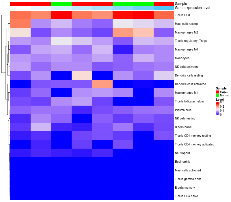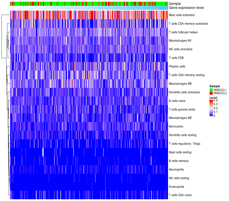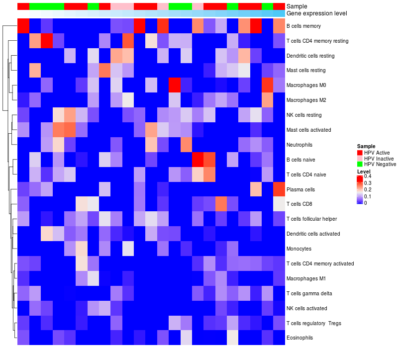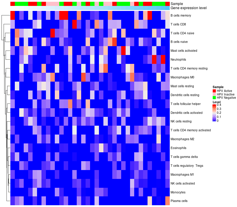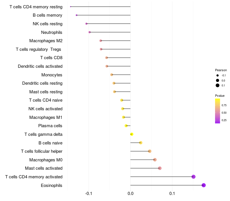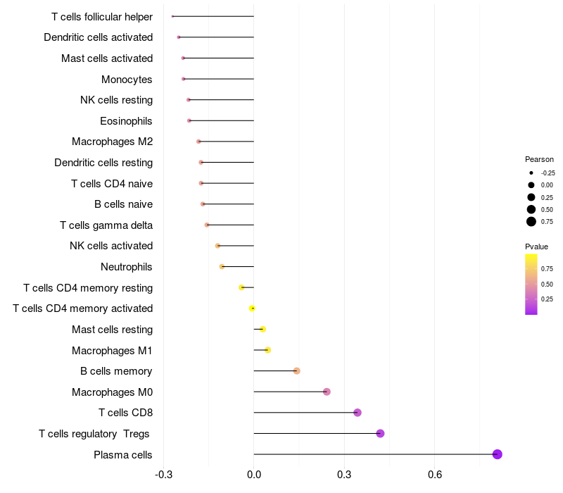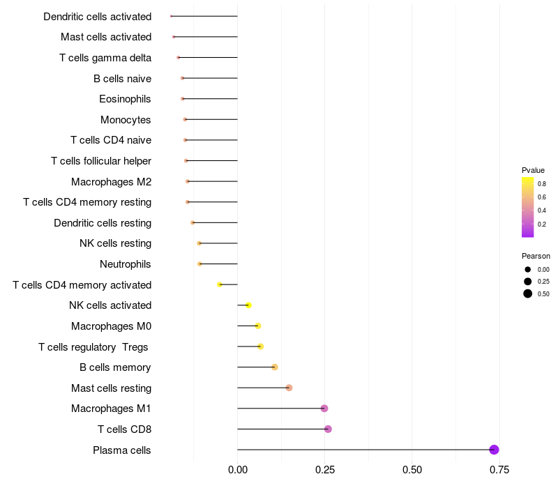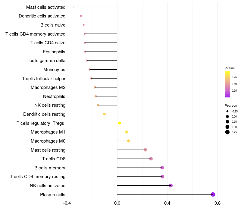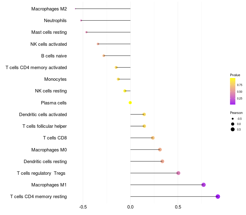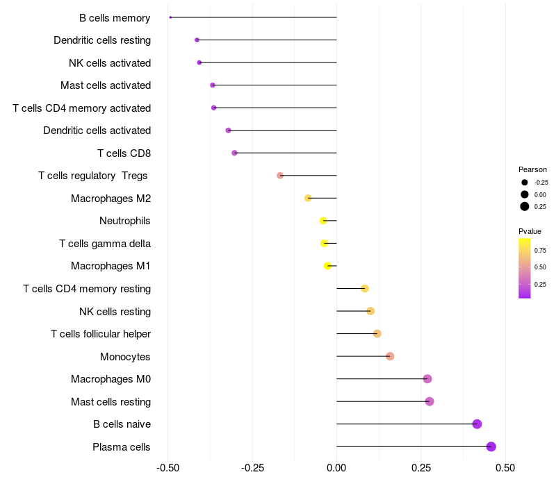 Lollipop of COX7B2 expression and immune infiltrating cell level correlation result in HPV+ samples