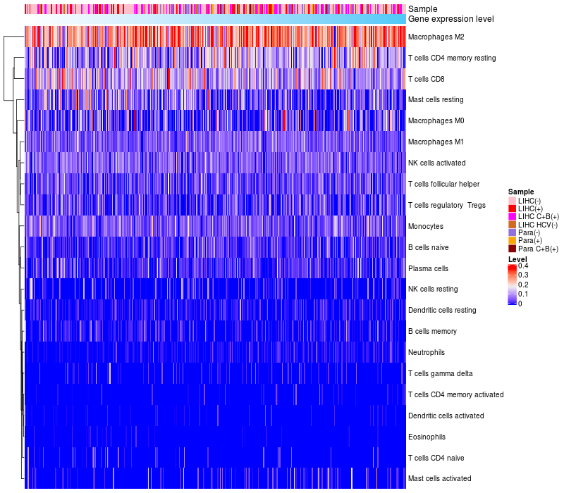Relationship between gene expression and immune infiltrating cell level