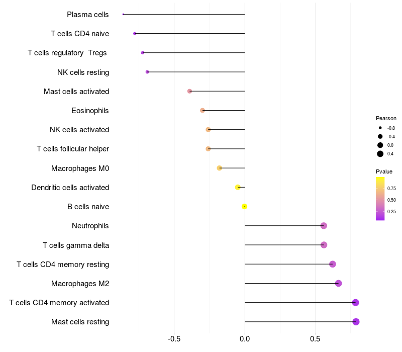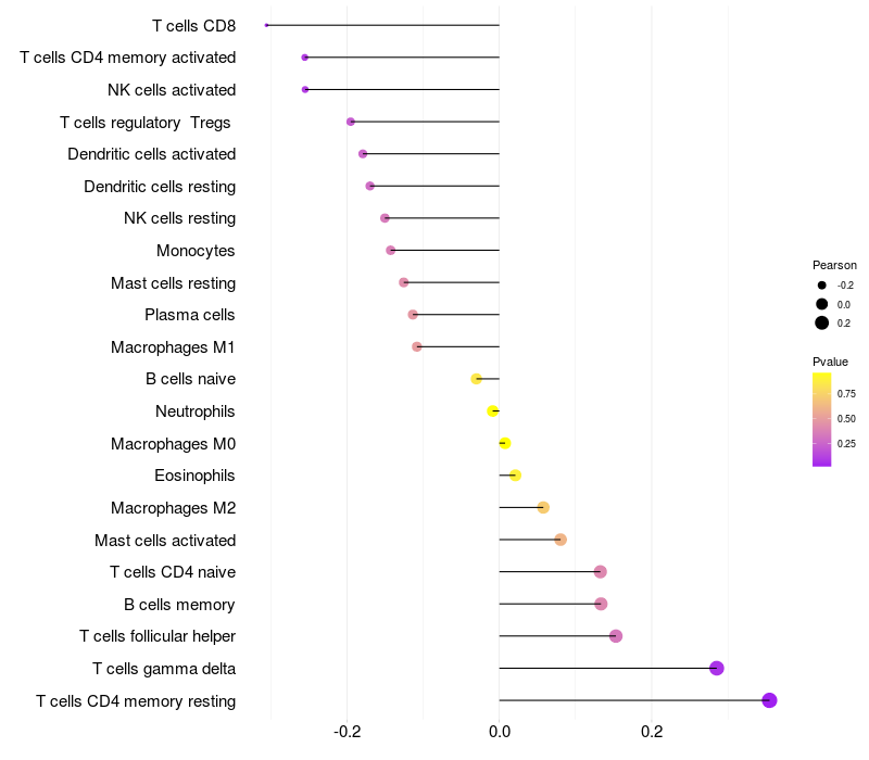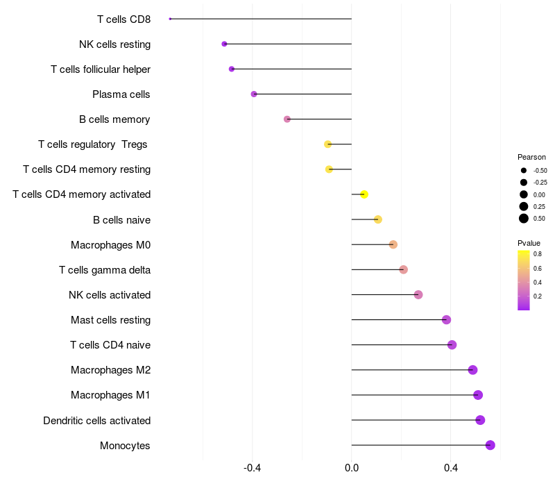 Lollipop of CPNE8 expression and immune infiltrating cell level correlation result in EBV+ samples