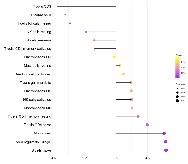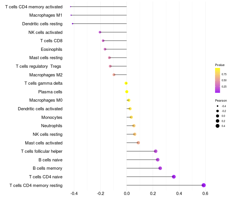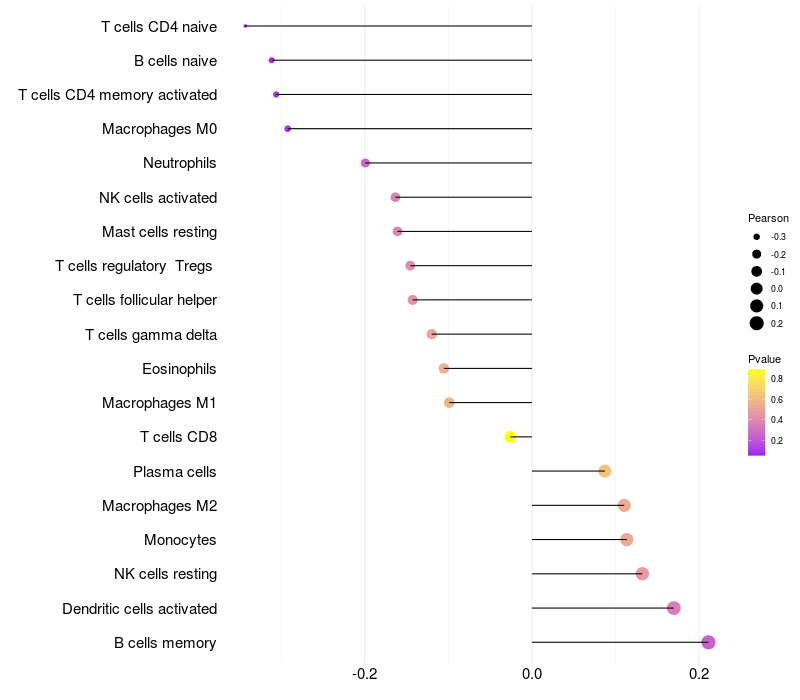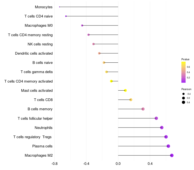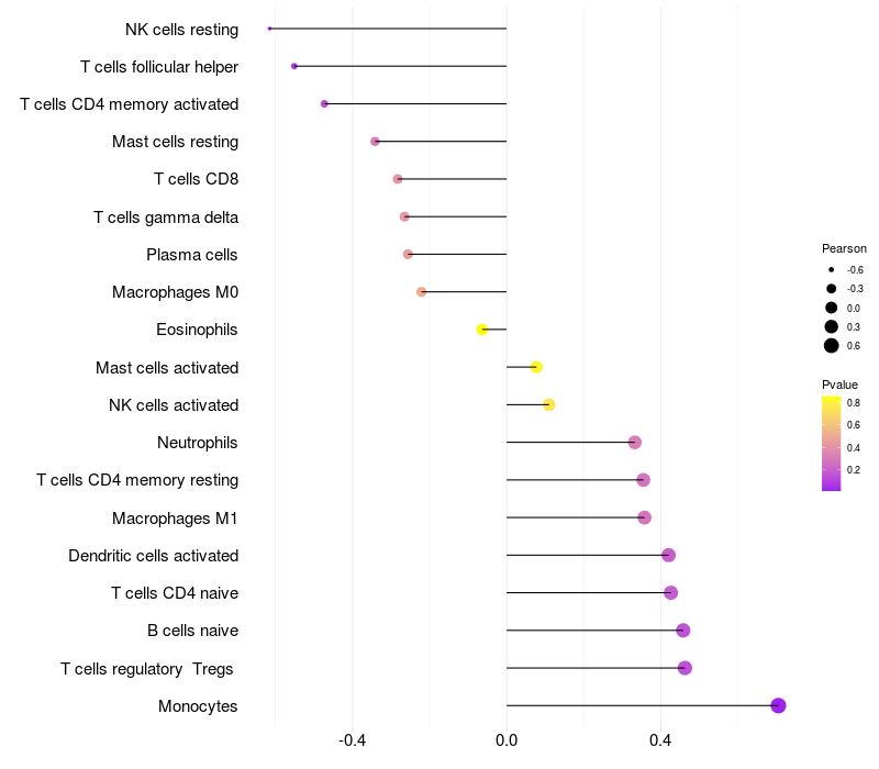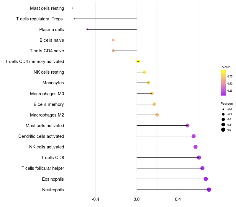 Lollipop of CPPED1 expression and immune infiltrating cell level correlation result in EBV+ samples
