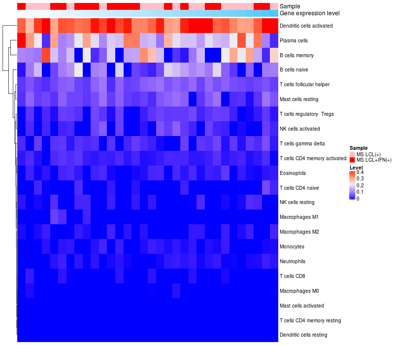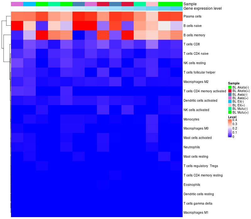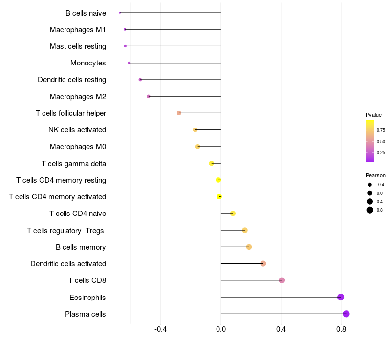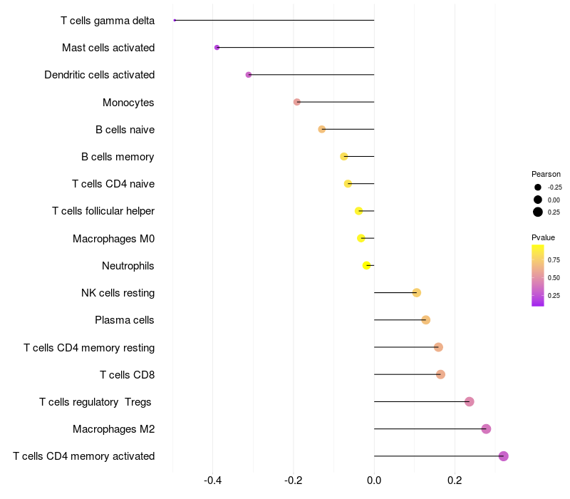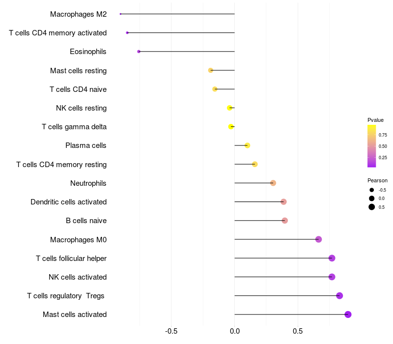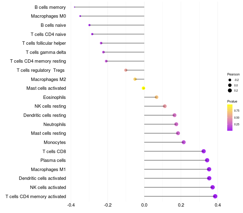 Lollipop of CPS1 expression and immune infiltrating cell level correlation result in EBV+ samples
