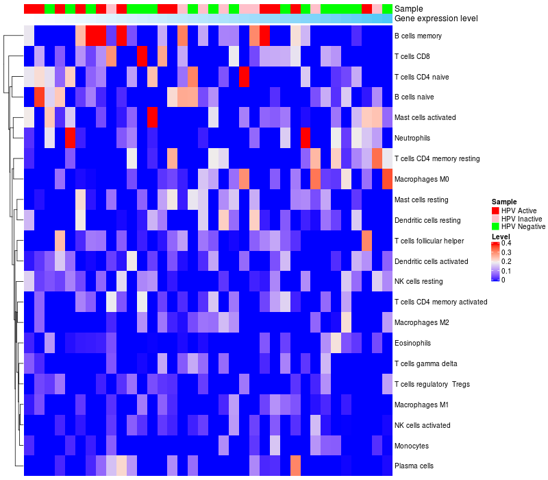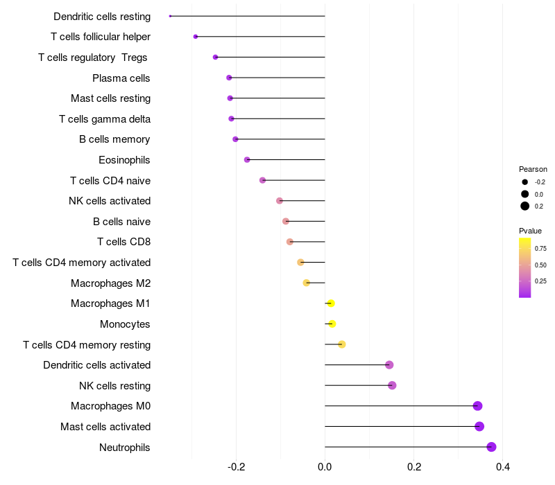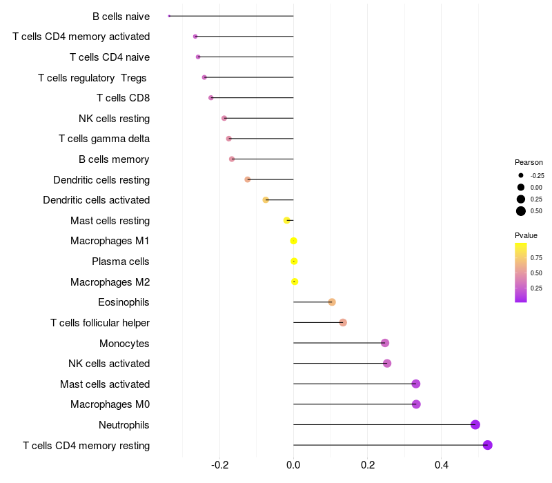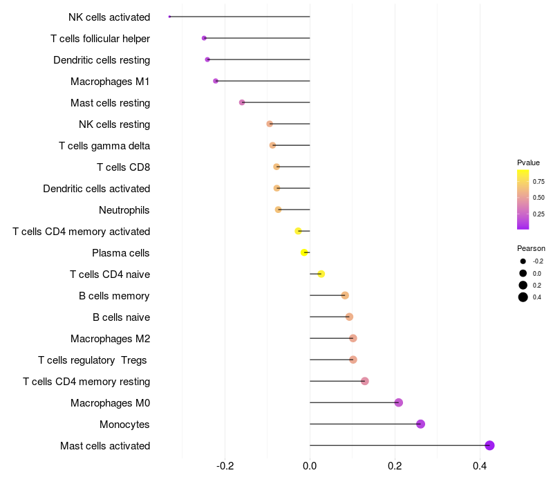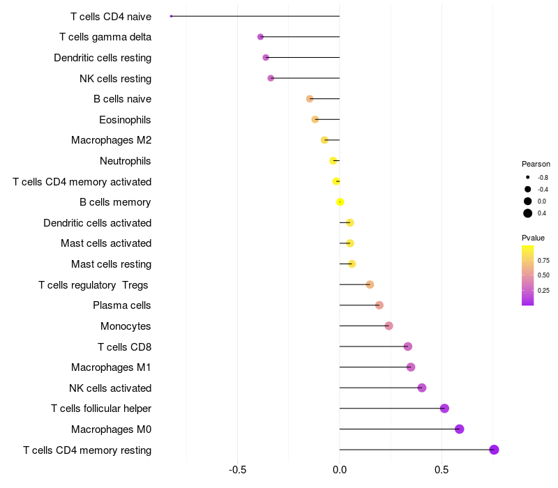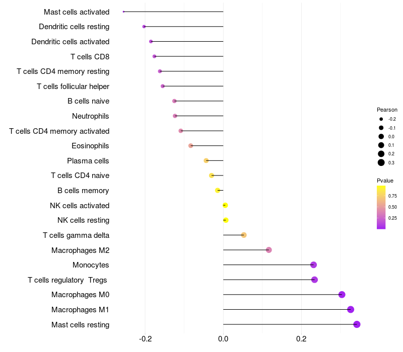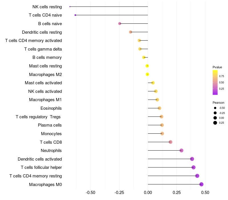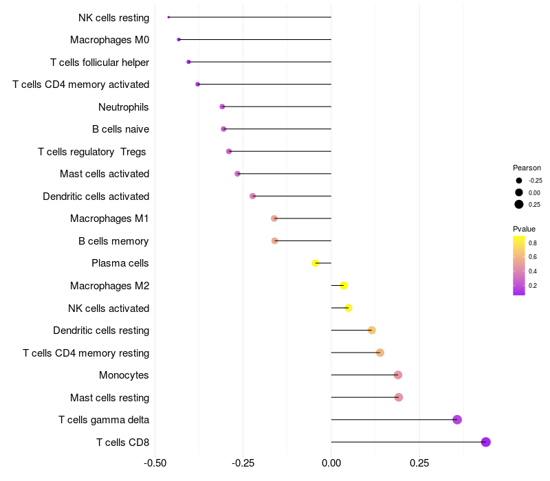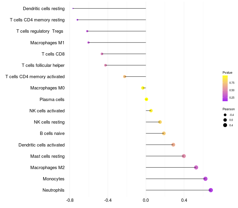 Lollipop of CPXM1 expression and immune infiltrating cell level correlation result in HPV+ samples