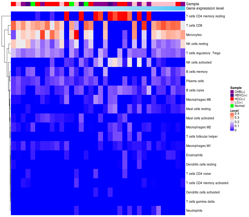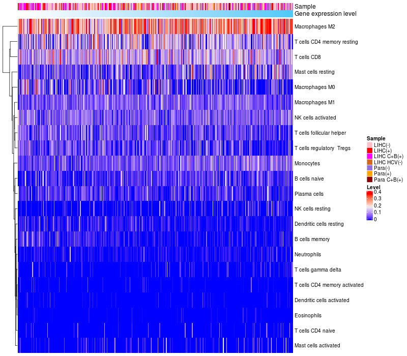Liver hepatocellular carcinoma HCV (HBV+)(86), Liver hepatocellular carcinoma HCV (HBV-)(19), Liver hepatocellular carcinoma (HBV+)(209), Liver hepatocellular carcinoma (HBV+)(60), Paracancerous HCV (HBV+)(4), Paracancerous (HBV-)(28), Paracancerous (HBV+)(18) |