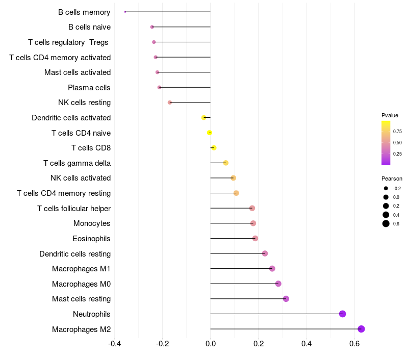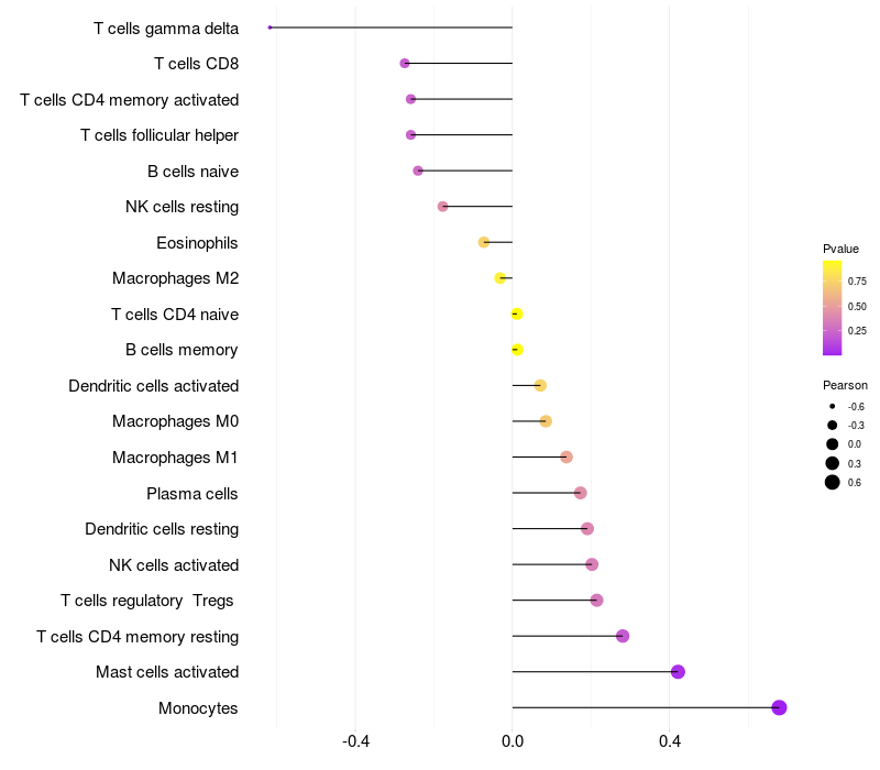 Relationship between gene expression and immune infiltrating cell level