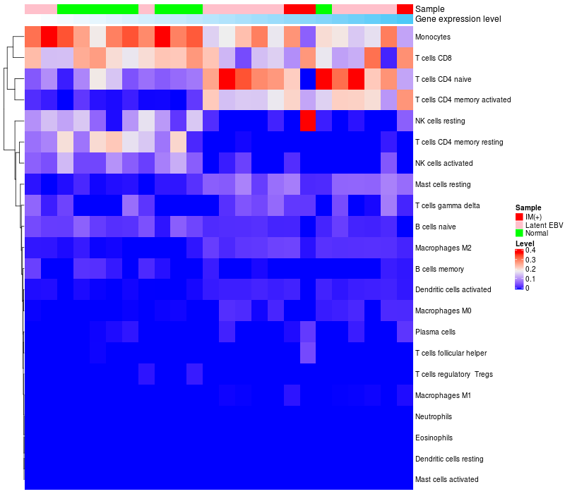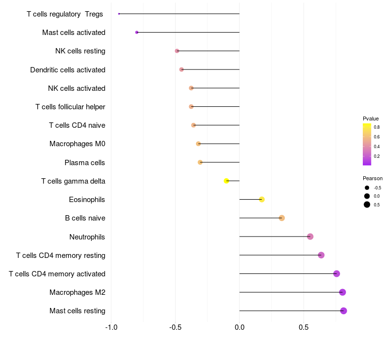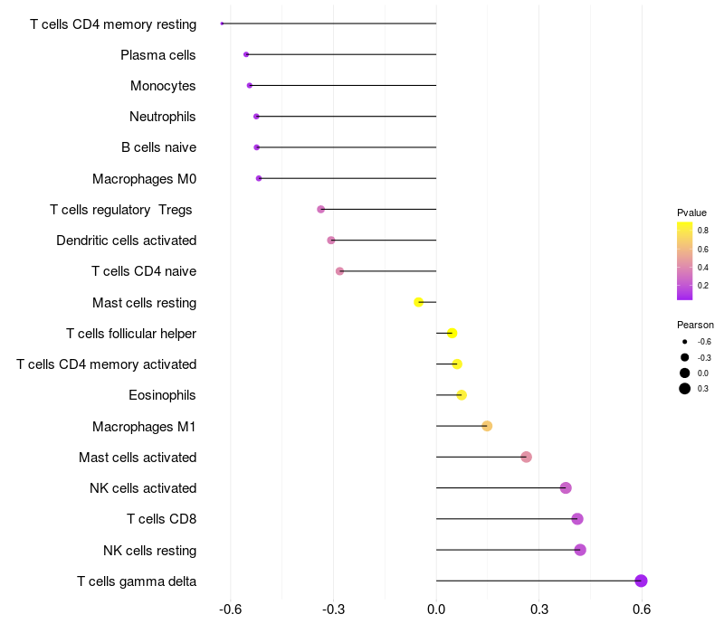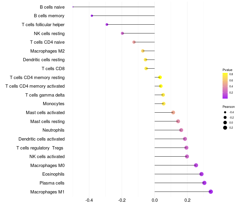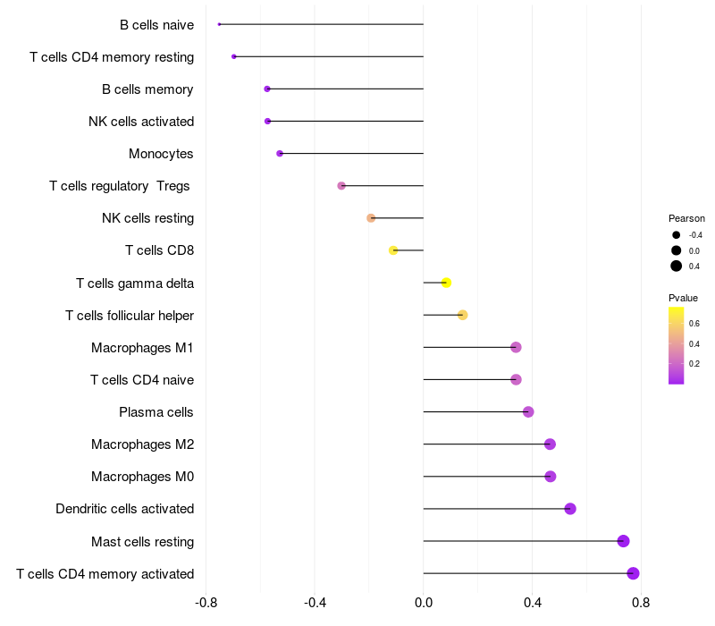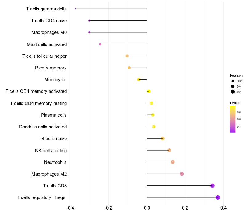 Lollipop of CRIM1 expression and immune infiltrating cell level correlation result in EBV+ samples