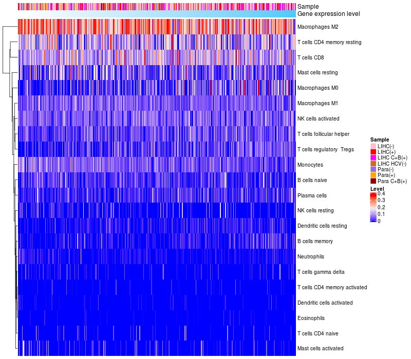 Relationship between gene expression and immune infiltrating cell level