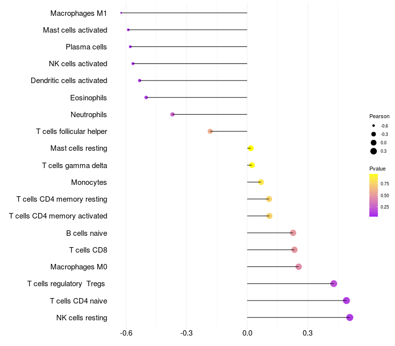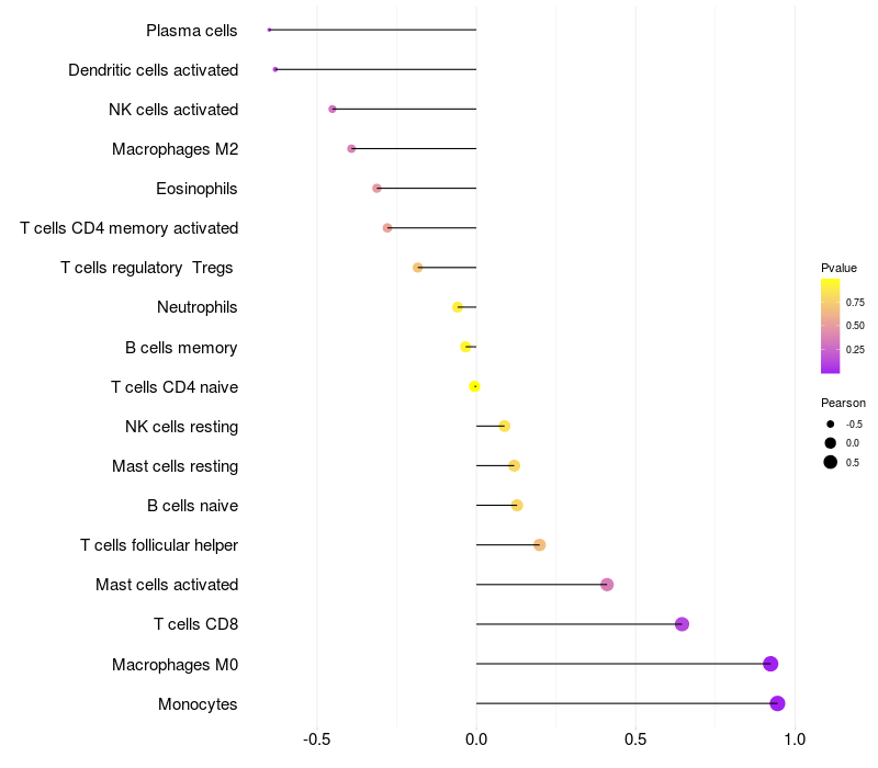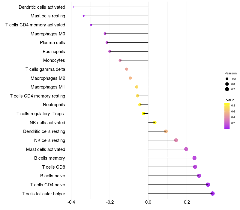 Lollipop of CRTC1 expression and immune infiltrating cell level correlation result in EBV+ samples