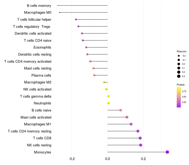 Relationship between gene expression and immune infiltrating cell level