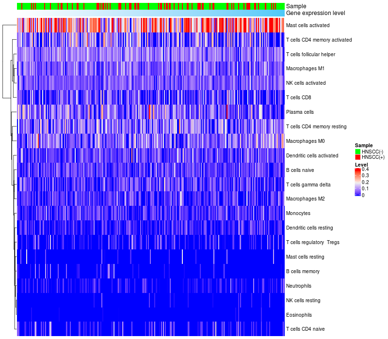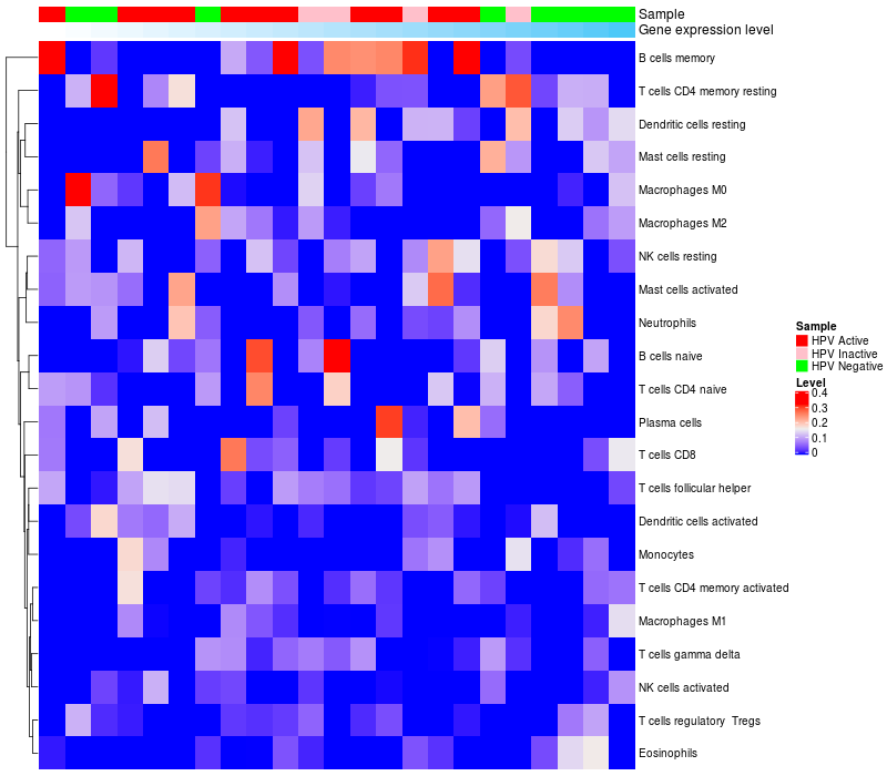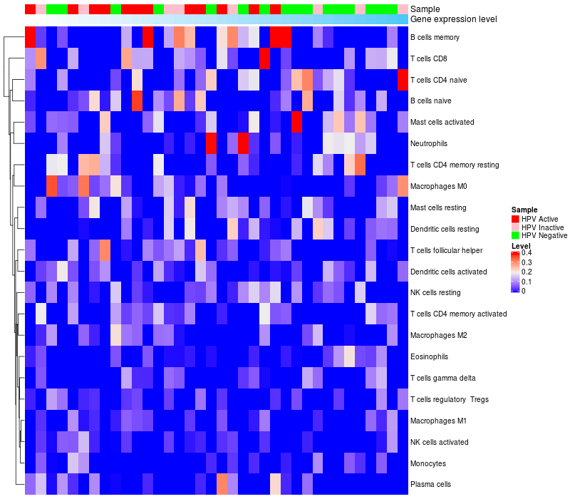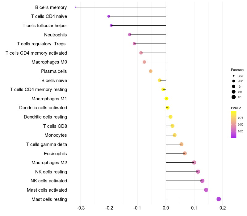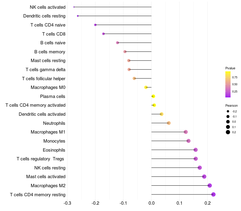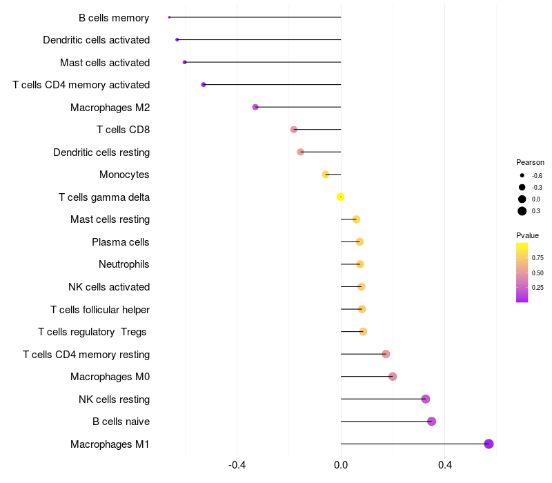 Lollipop of CSDE1 expression and immune infiltrating cell level correlation result in HPV+ samples