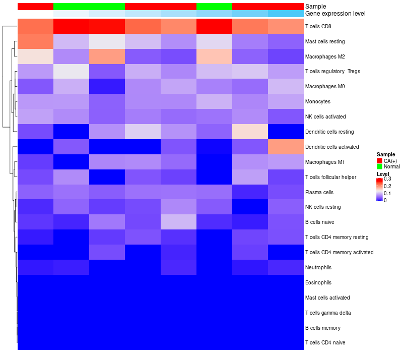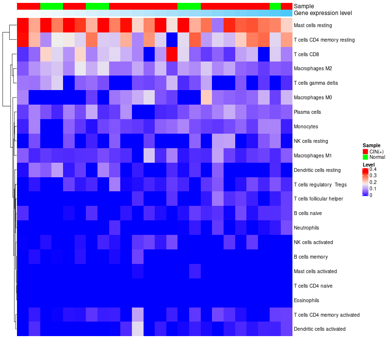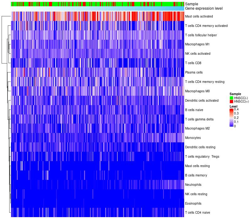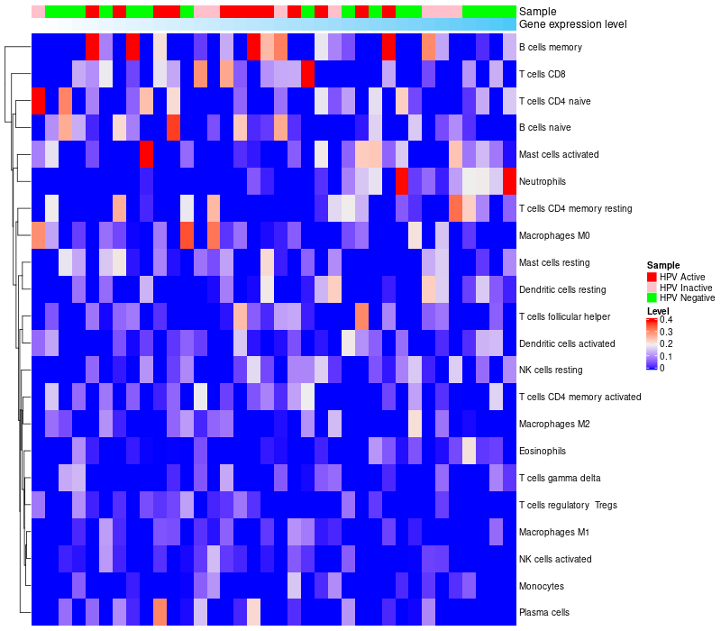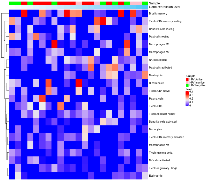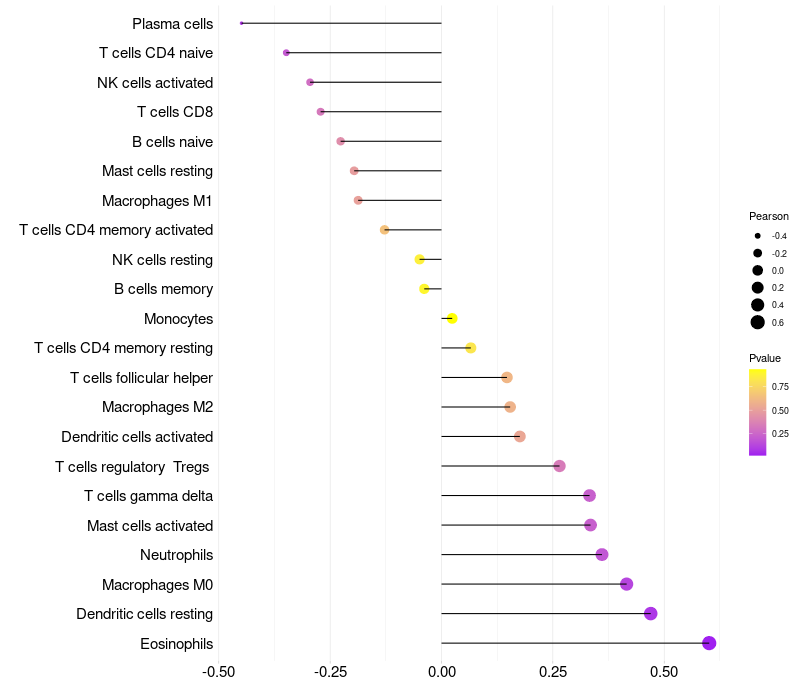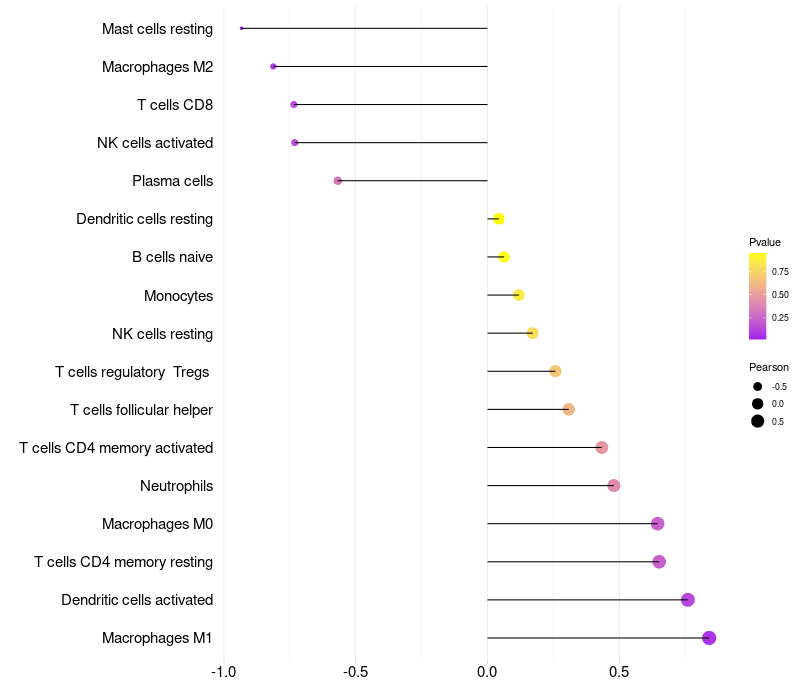 Lollipop of CSF3R expression and immune infiltrating cell level correlation result in HPV+ samples