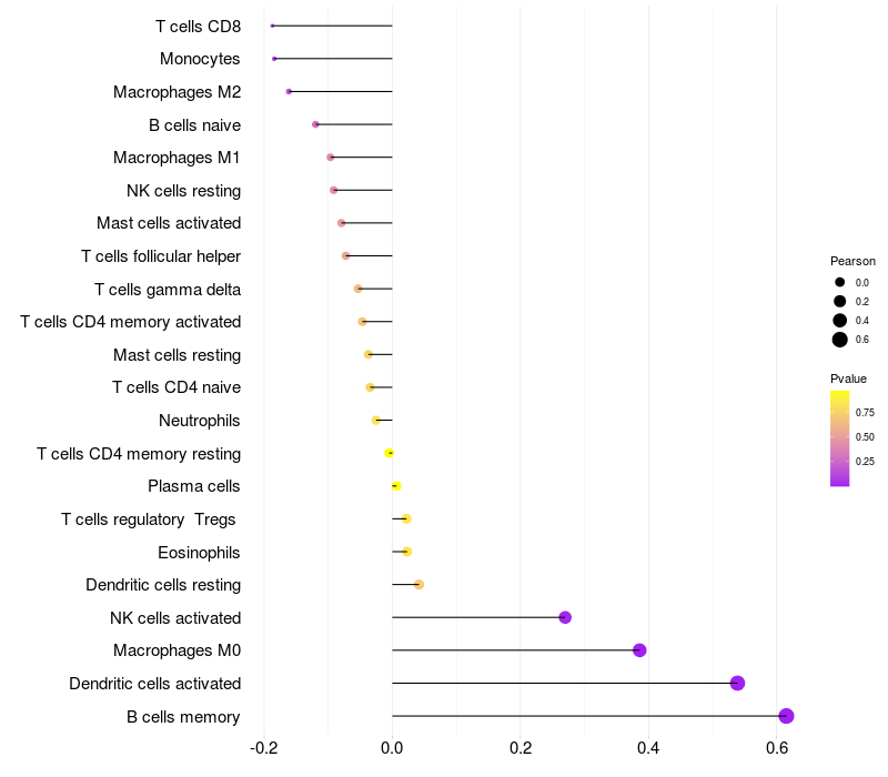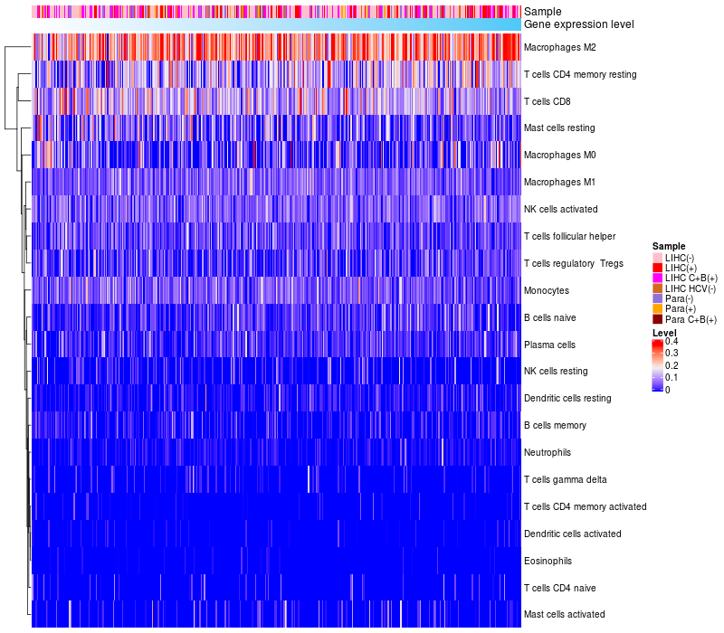 Relationship between gene expression and immune infiltrating cell level