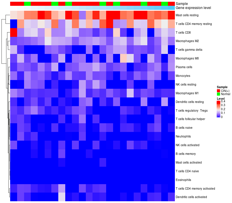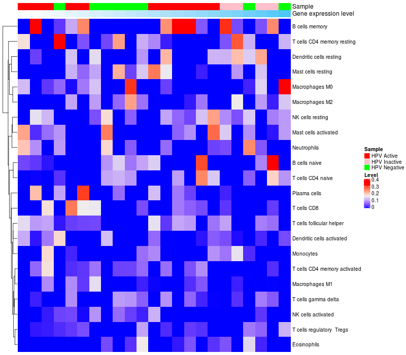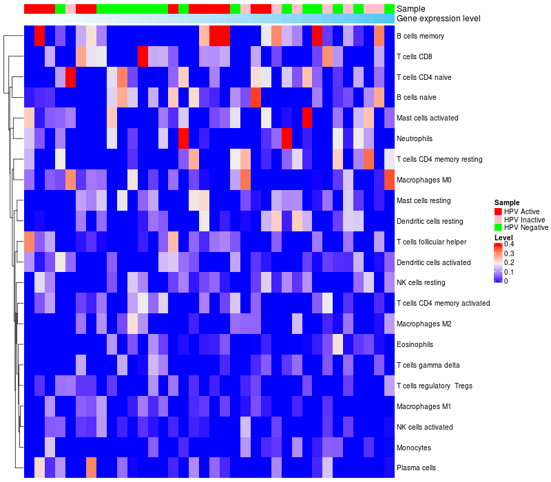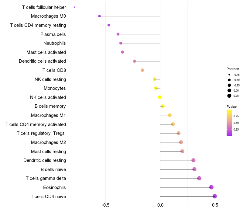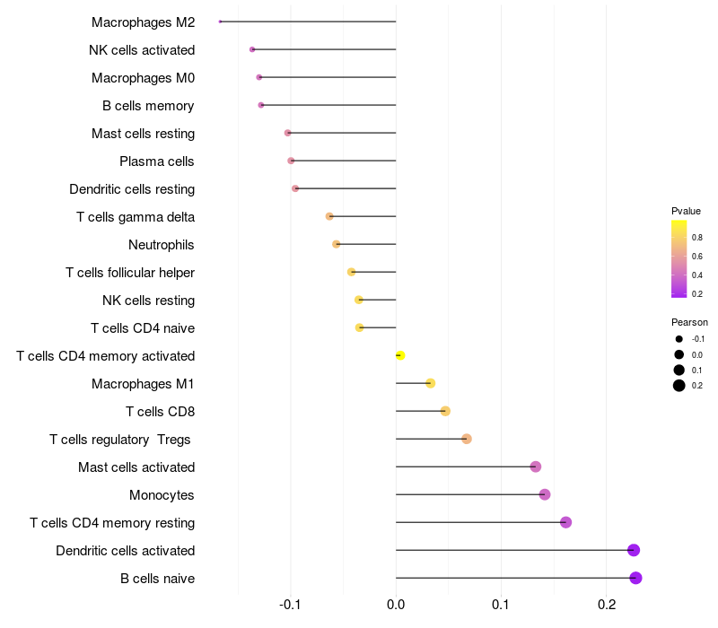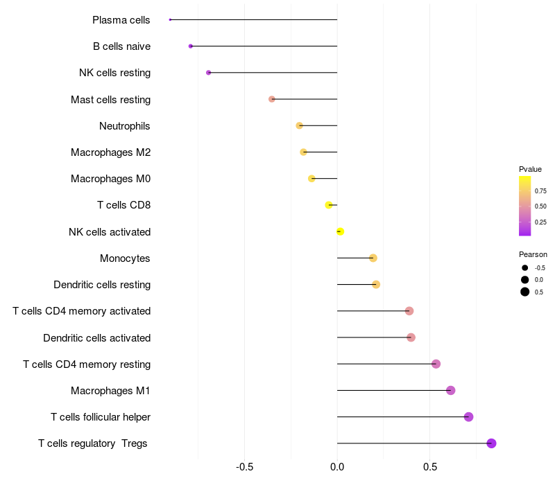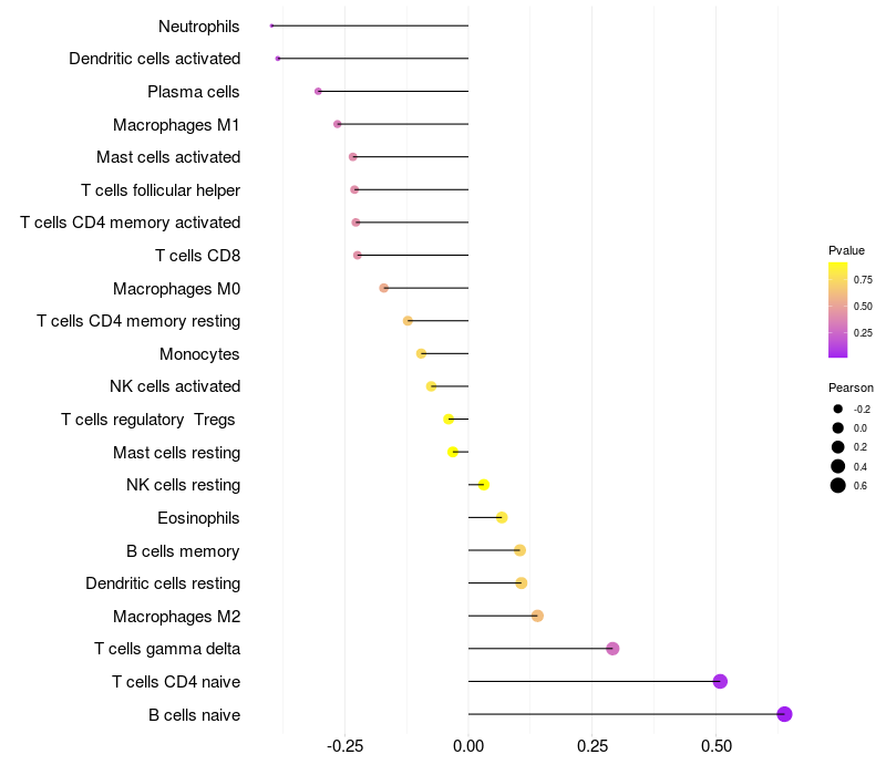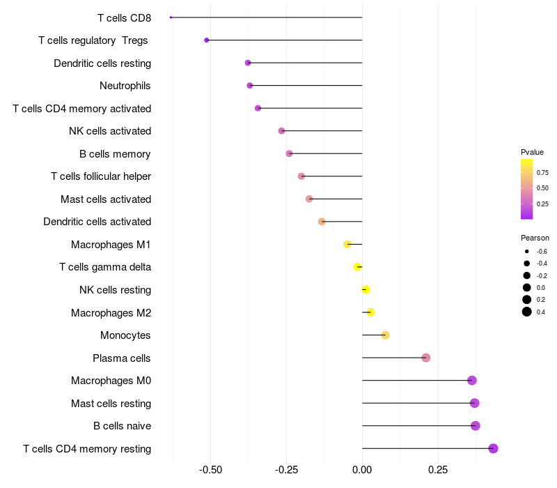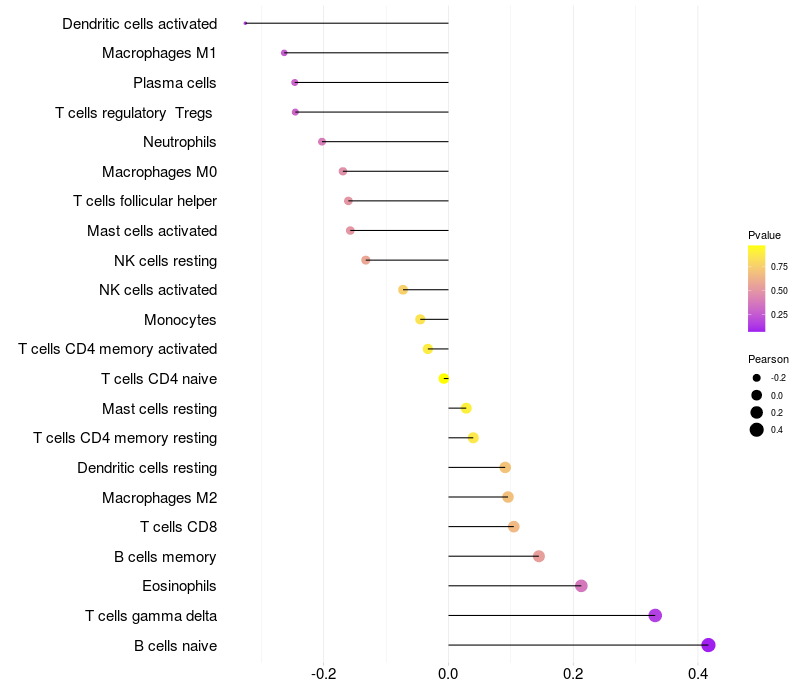 Lollipop of CSN2 expression and immune infiltrating cell level correlation result in HPV+ samples