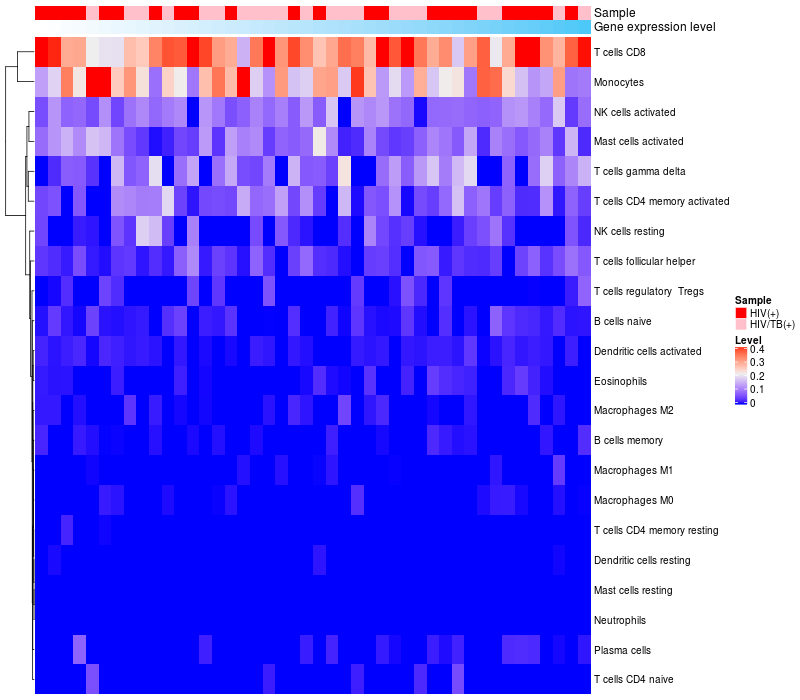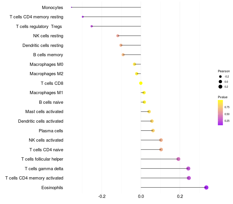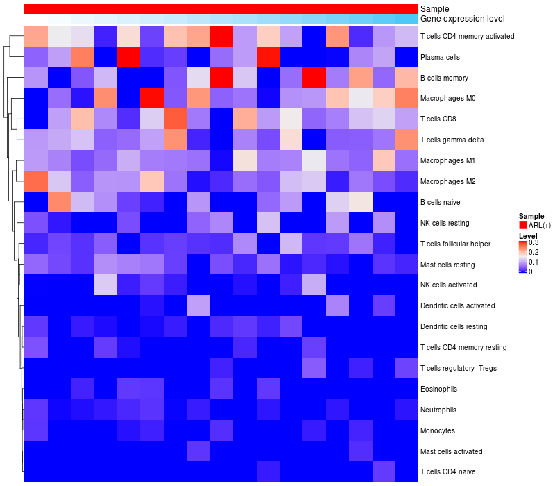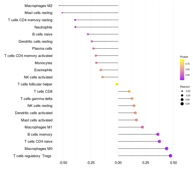 Relationship between gene expression and immune infiltrating cell level