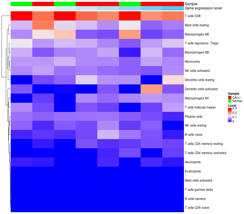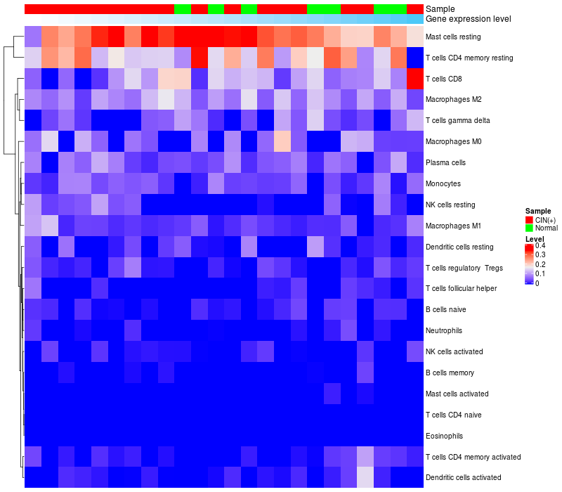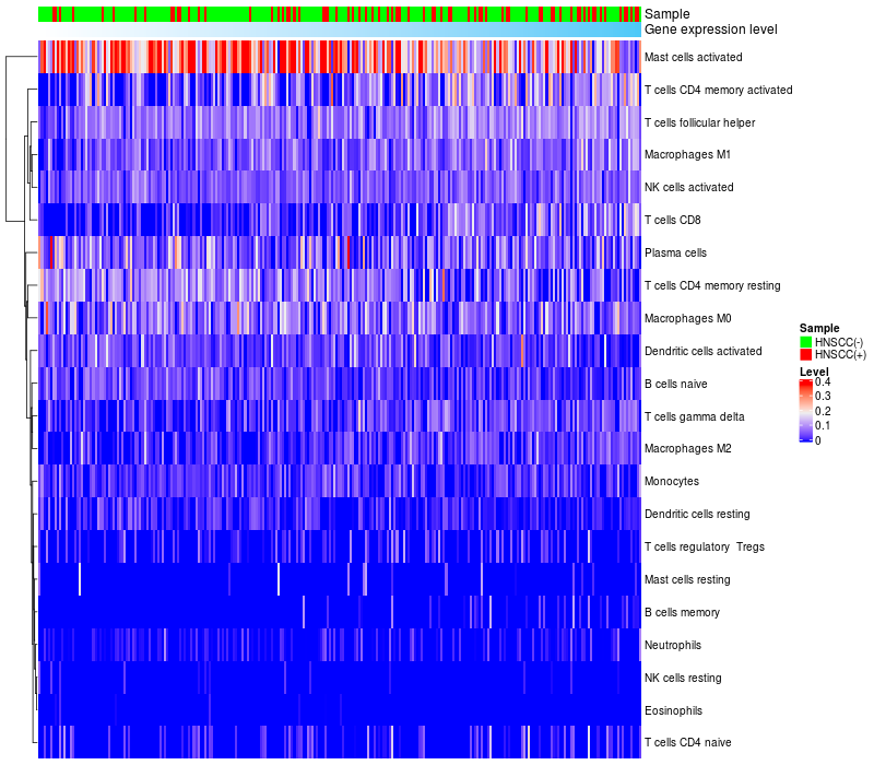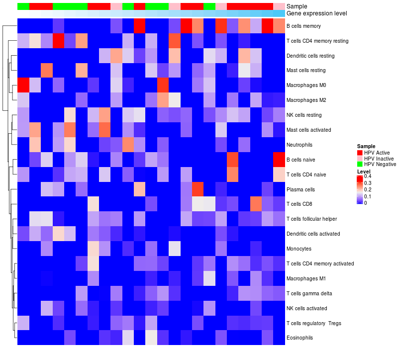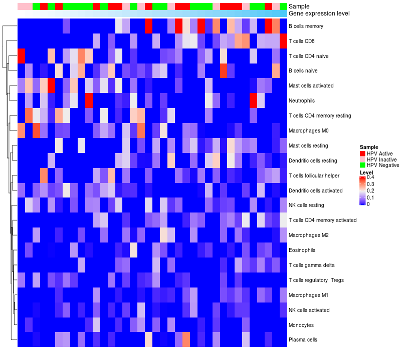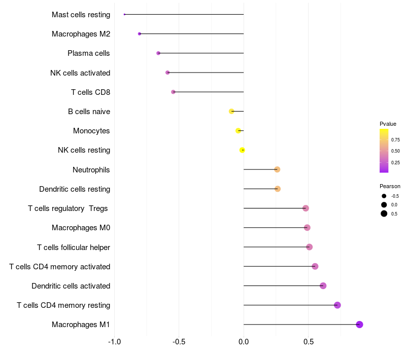 Lollipop of CST7 expression and immune infiltrating cell level correlation result in HPV+ samples