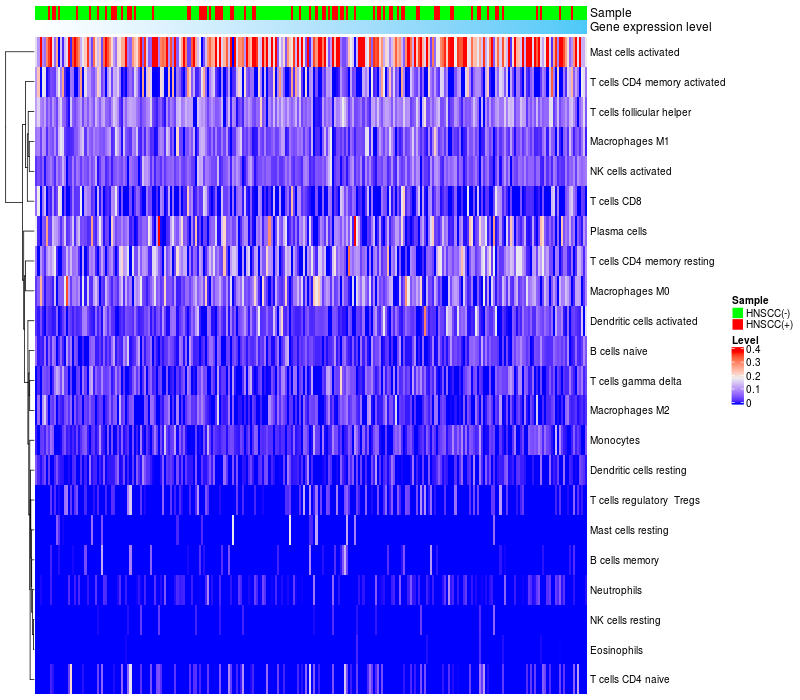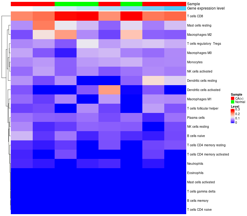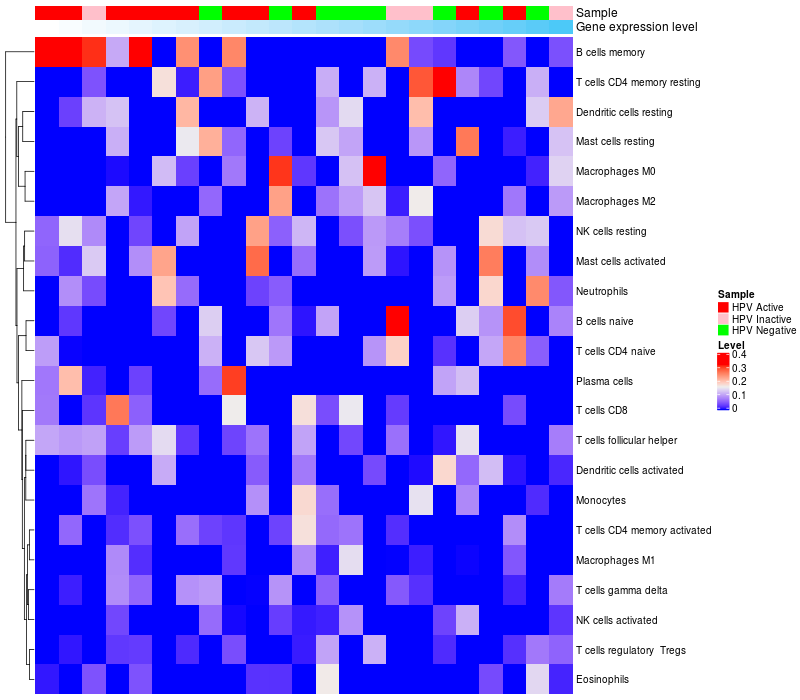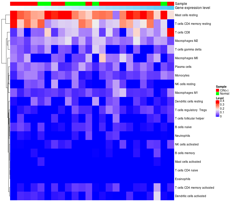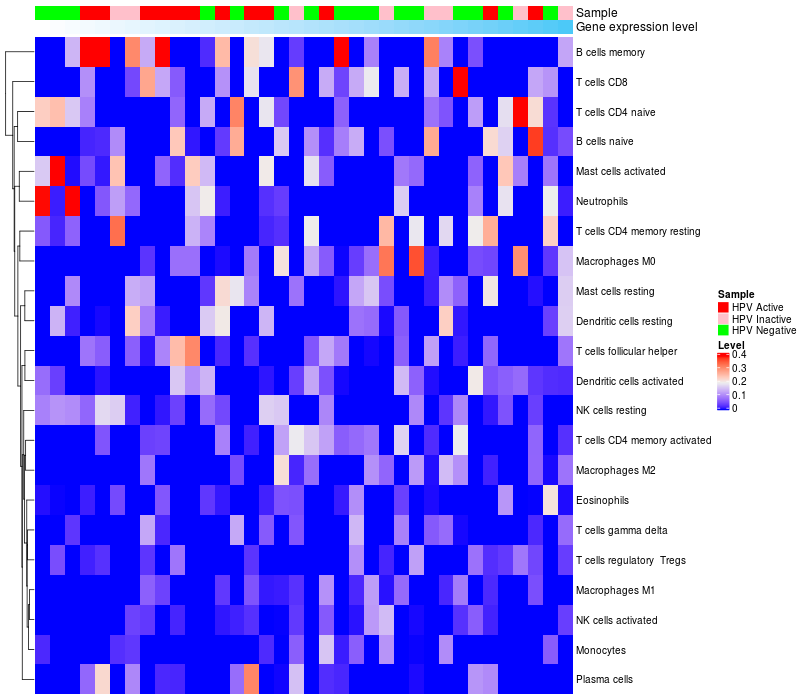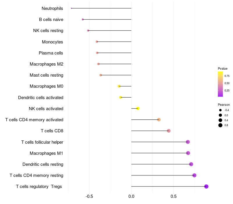 Lollipop of CT45A1 expression and immune infiltrating cell level correlation result in HPV+ samples