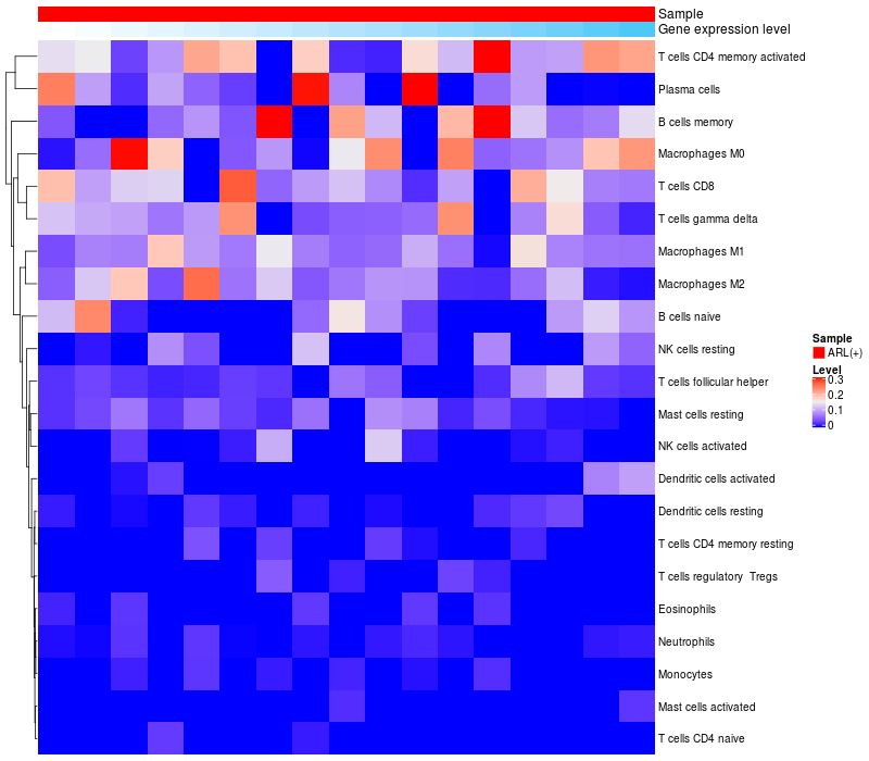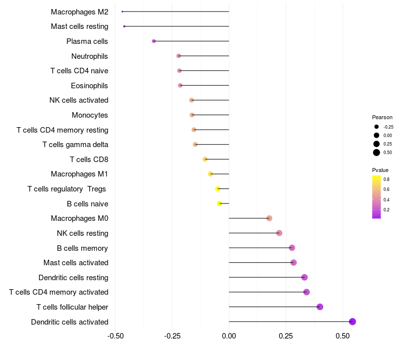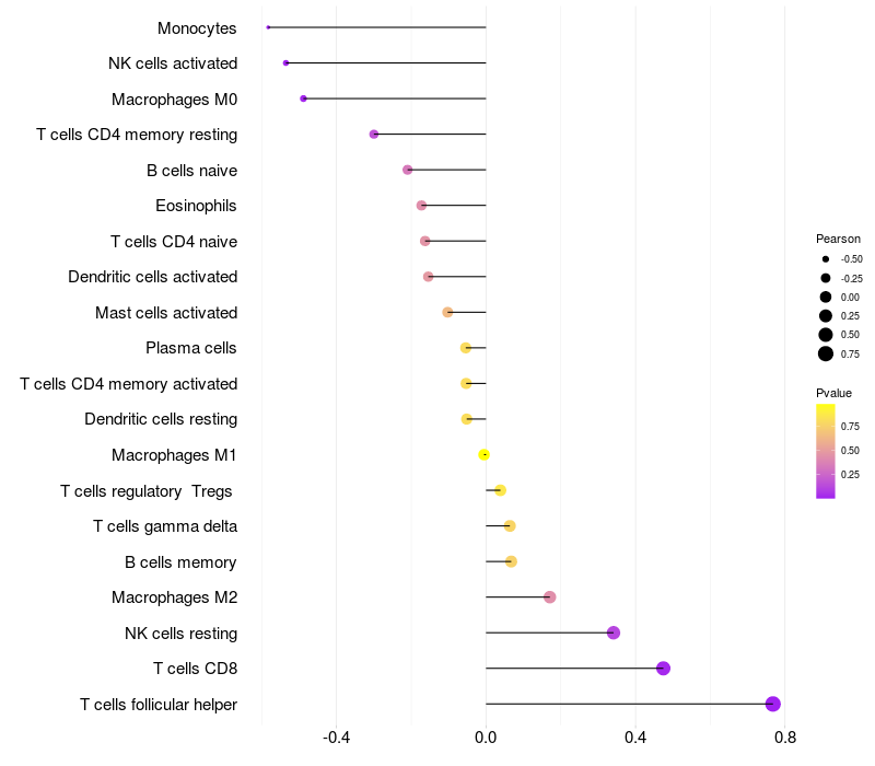 Relationship between gene expression and immune infiltrating cell level
