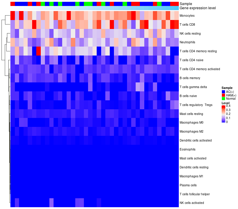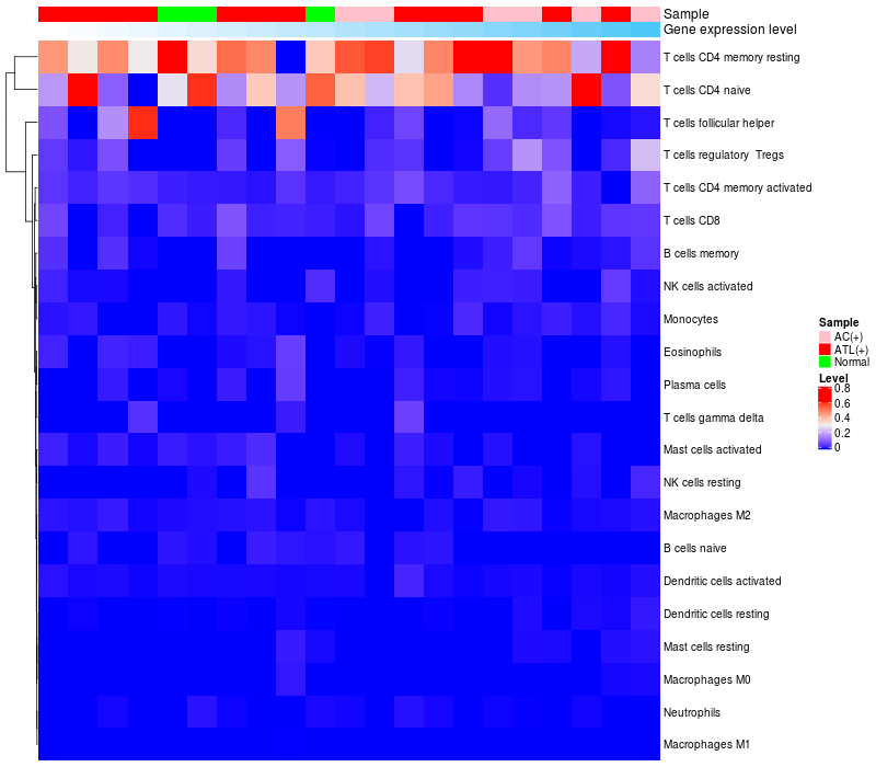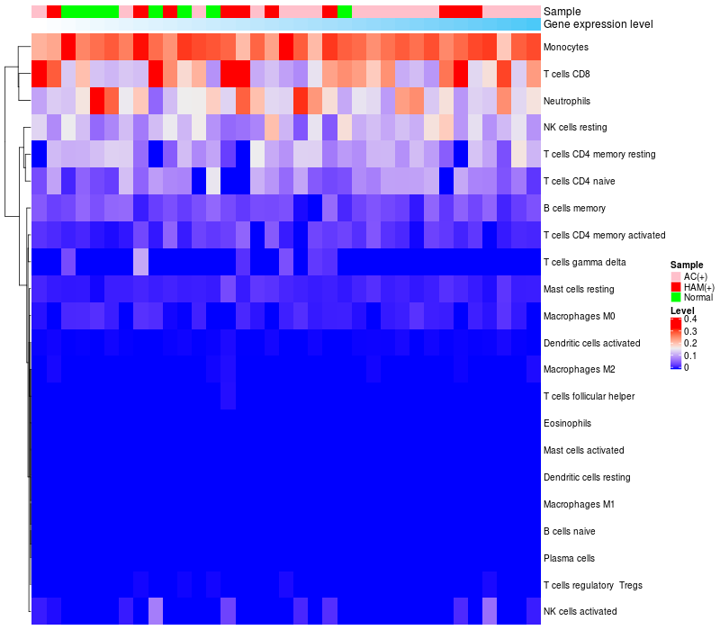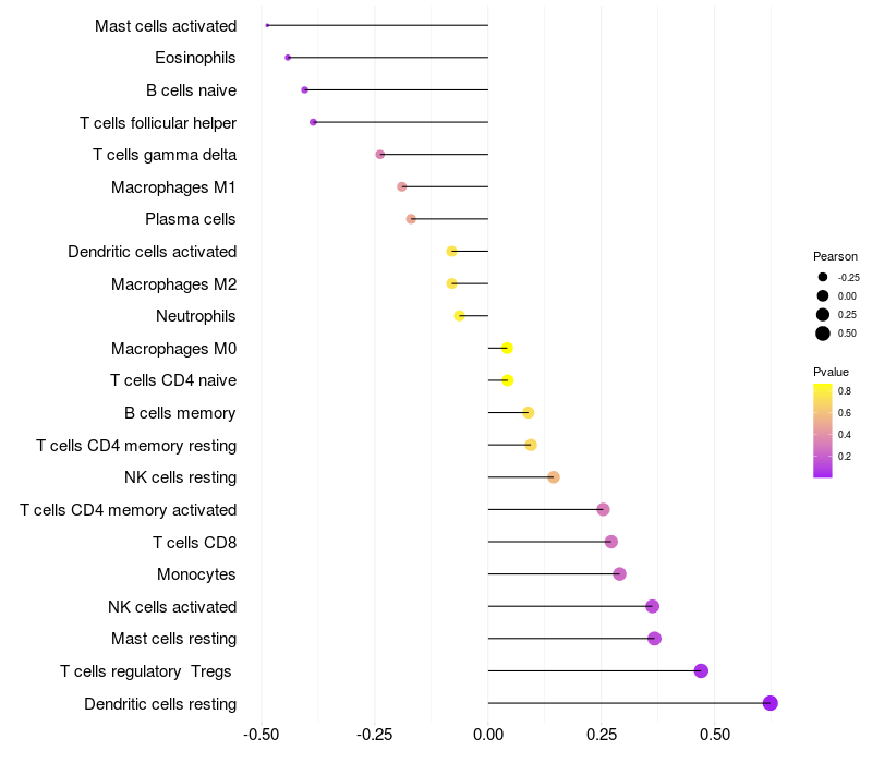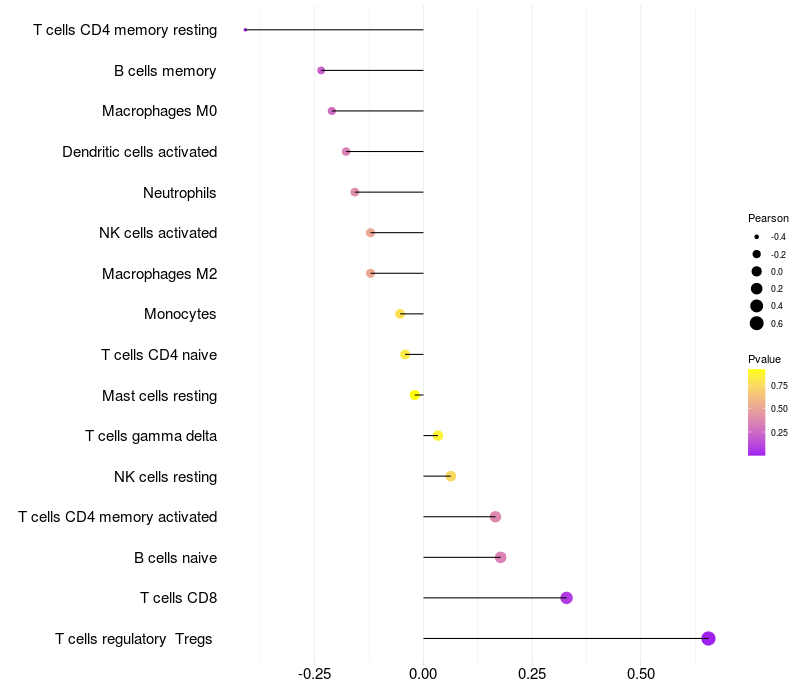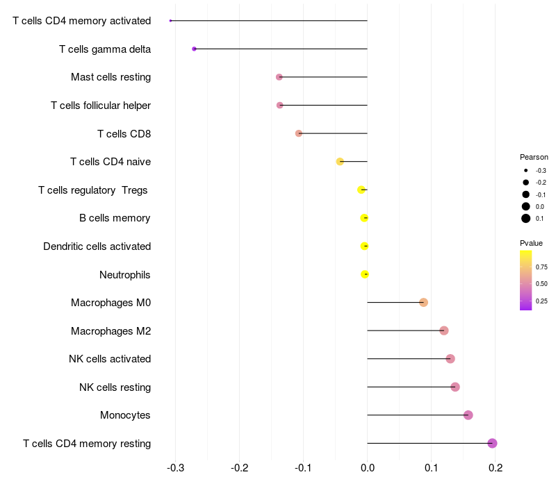 Lollipop of CTNNBIP1 expression and immune infiltrating cell level correlation result in HTLV1+ samples