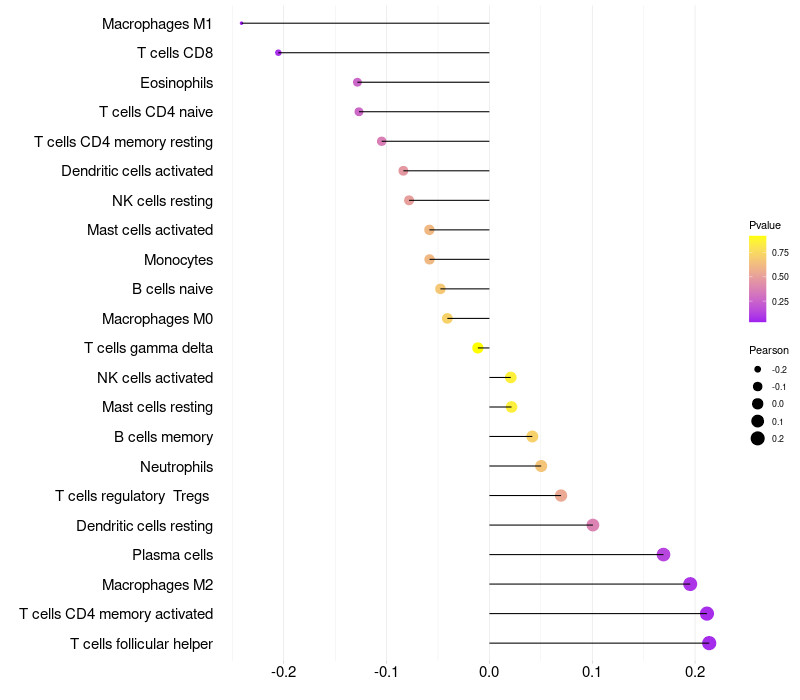 Lollipop of CTNS expression and immune infiltrating cell level correlation result in HBV+ samples