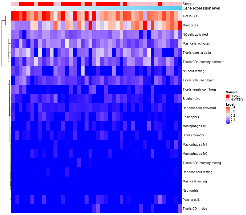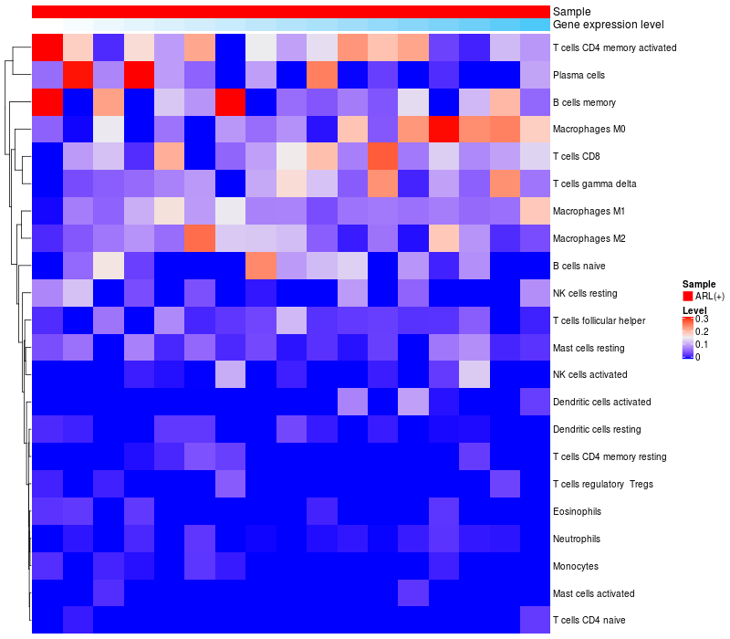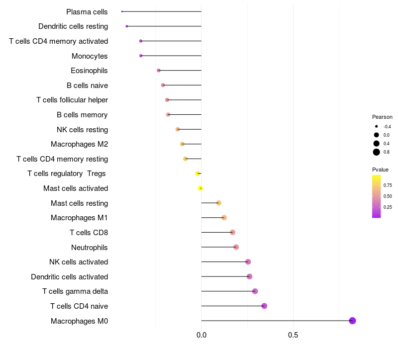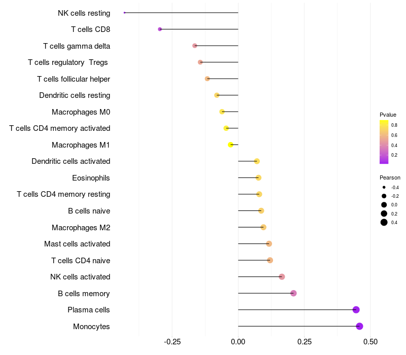 Relationship between gene expression and immune infiltrating cell level
