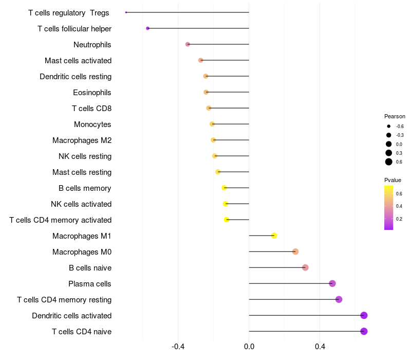 Lollipop of CTSK expression and immune infiltrating cell level correlation result in HBV+ Liver cirrhosis samples